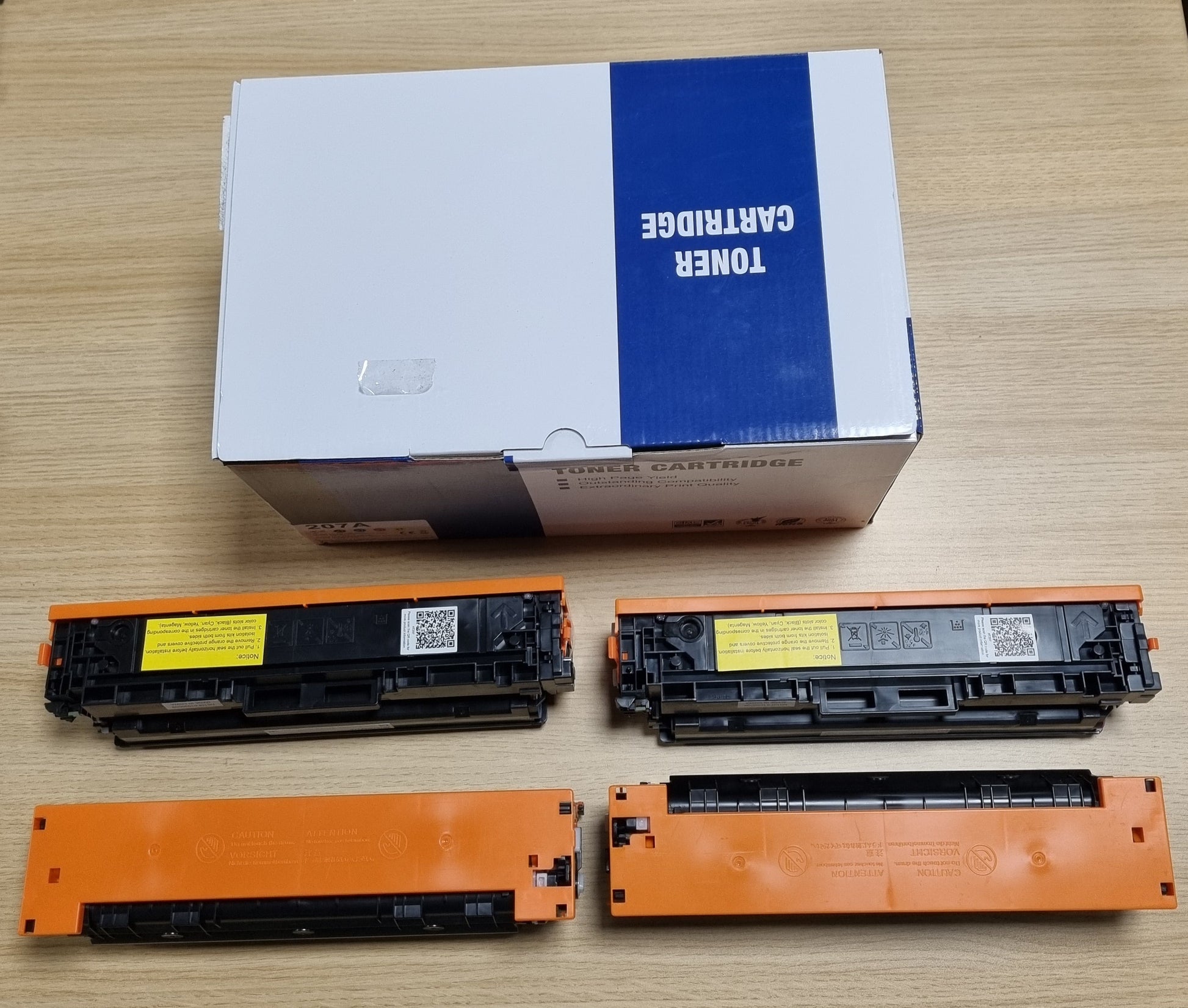 - Produkti është i mbështjellë me mbrojtje me dy shtresa brenda kutive të trasha për të mos pësuar dëmtime gjatë transportit dhe për të ruajtur rrjedhjen e tonerit dhe pastërtinë e mjedisit të zyrës.