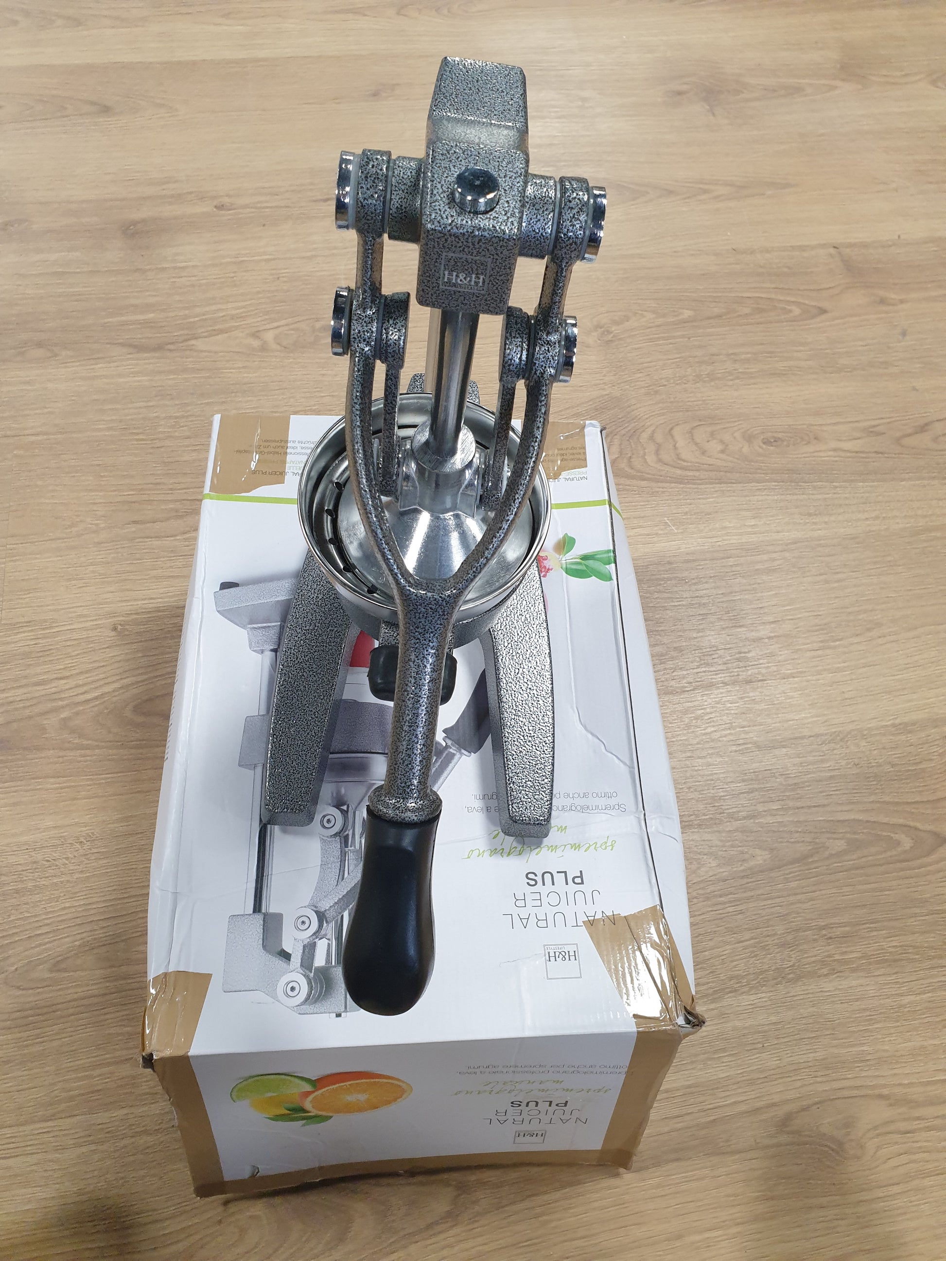 135324 - H&H - Shtrydhëse Profesionale Shege me Levë, Metale, Ngjyrë Gri, Dizajn i Fortë, Madhësi 29x40cm, e Përshtatshme për Shegë dhe Fruta Agrume, Përdorim Shtëpiak dhe Profesional