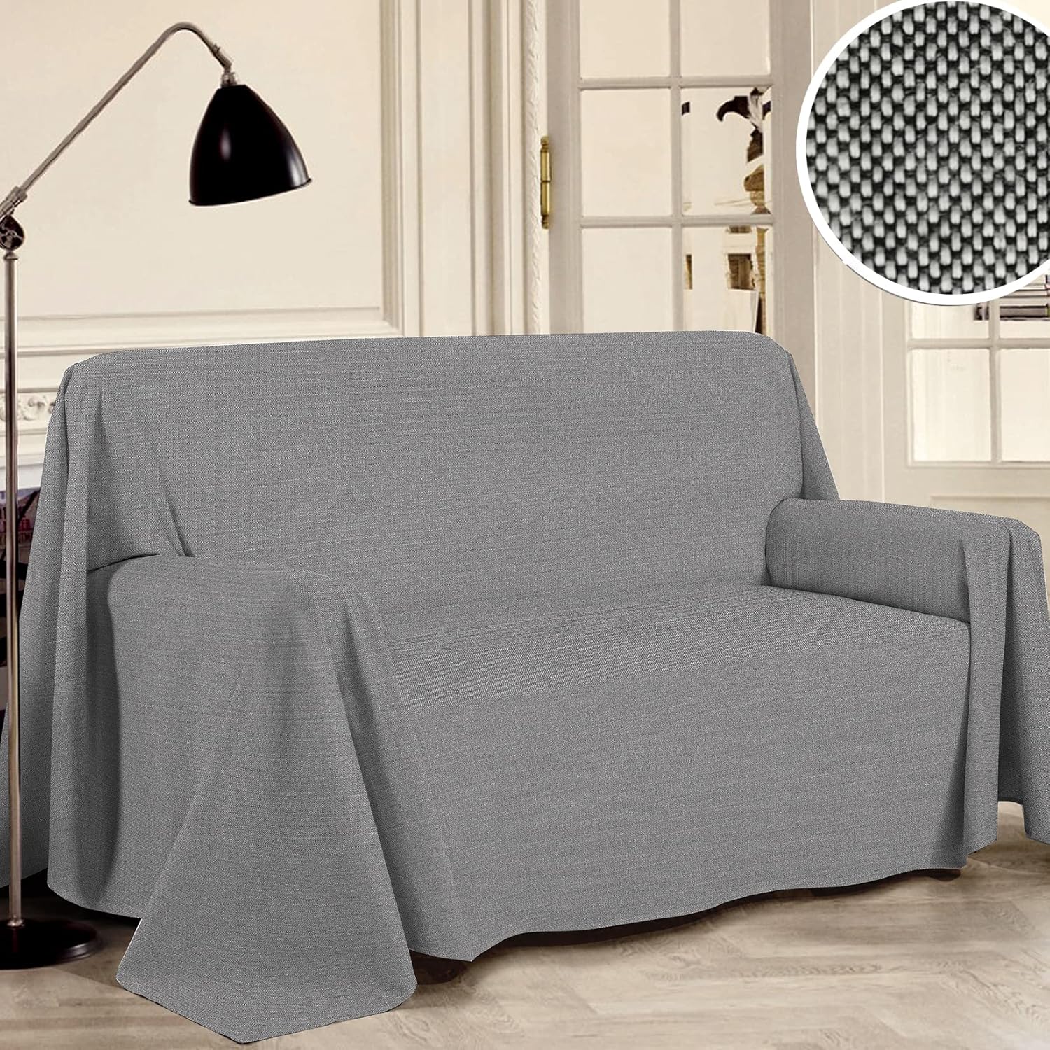 135372 - DELICATE THOUGHTS Mbulesë Divani 360x290cm, Pambuku 100% e Ricikluar, Prodhuar në Itali, Ngjyrë Antracit, Përdorësi si Mbrojtëse Divani dhe Batanije Pikniku
