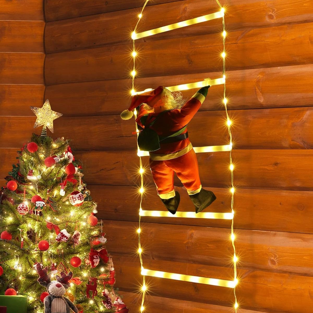 137619 - GEEMOO Drita Dekorimi me Shkallë LED 0.75M, 98 Drita, për Babagjyshin e Vitit të Ri, 8 Modalitete Dekorimi, Kohëmatës dhe Funksion Memorieje, Drita Krishtlindjesh për Dritare të Brendshme dhe të Jashtme, Ngjyra - E Bardhë e Ngrohtë