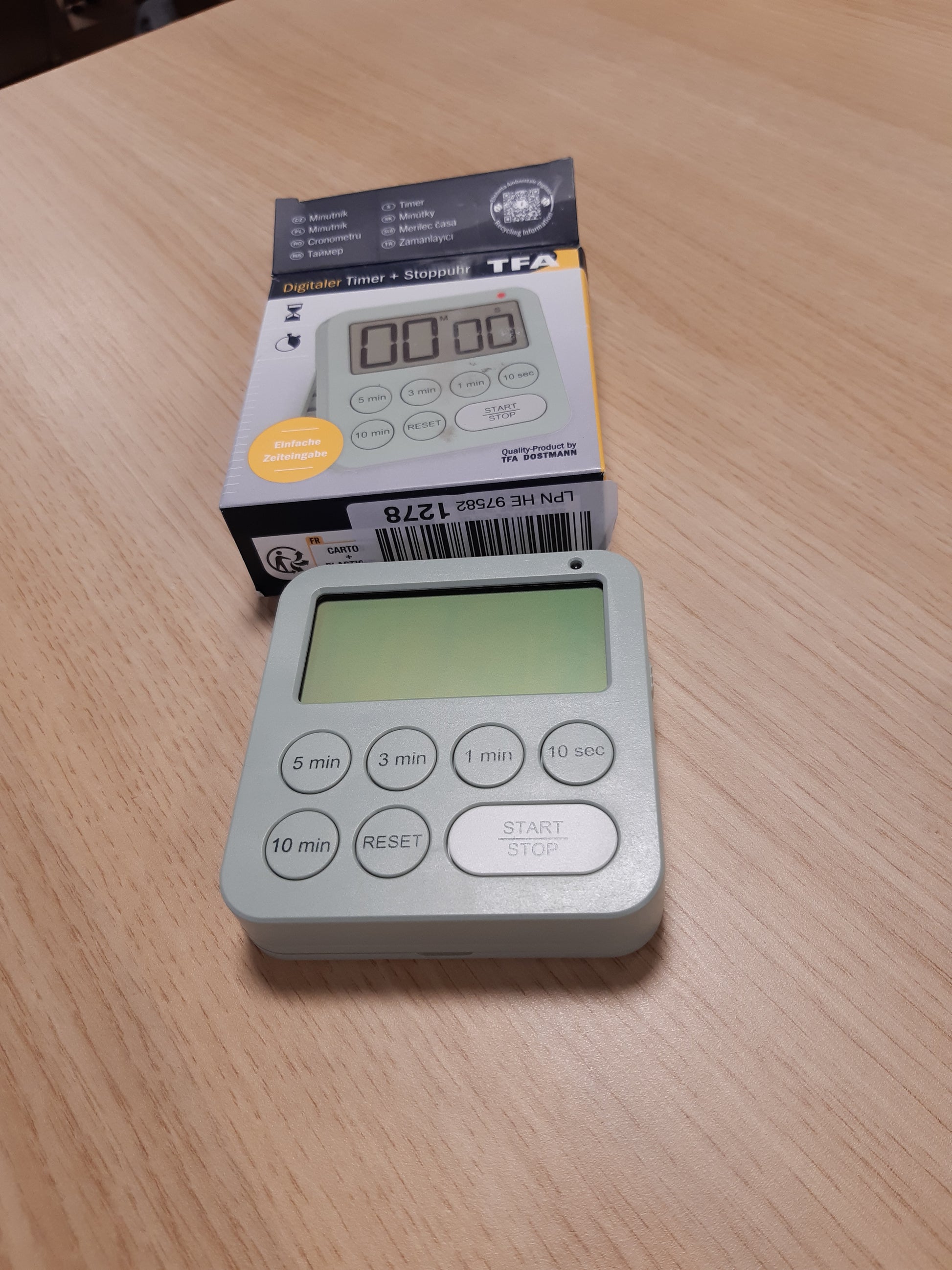 - Kohëmatës dixhital me alarm, i përshtatshëm për matjen e kohës në përdorime të ndryshme si kuzhinë, sport, mësim, provime etj.