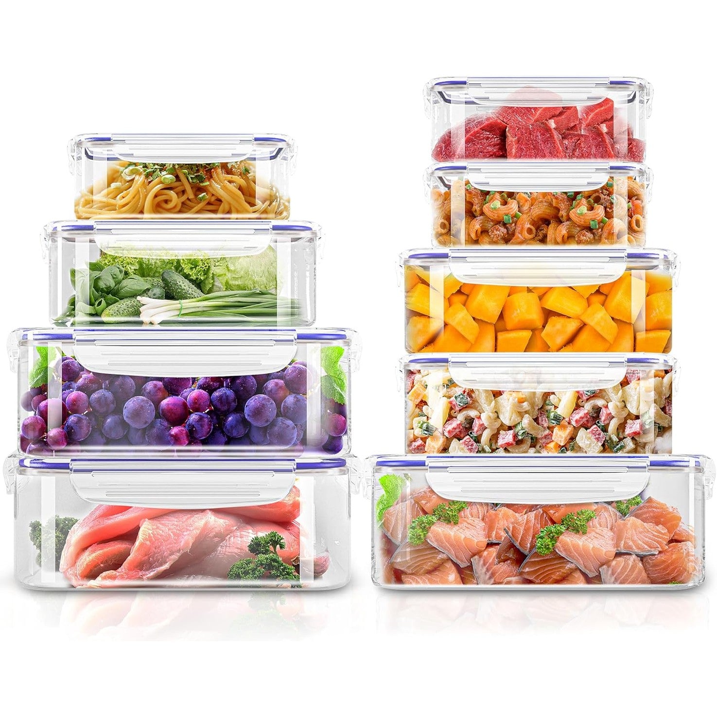 138131 - KICHLY PAKO prej 18 copë, 9 enë prej plastike të papërshkueshme për ruajtjen e ushqimit me 9 kapakë, për kuzhinë, qilar dhe dollap - Mikrovalë dhe ngrirëse të sigurta - pa BPA - Blu
