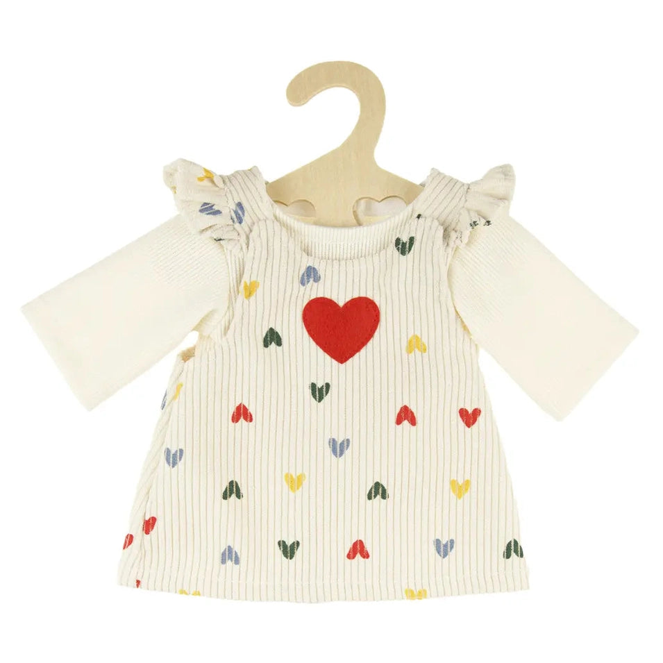 150149 -Heless – Fustan prej korduroi për kukulla “Zemra Konfeti” me bluzë, për kukulla 28–35 cm