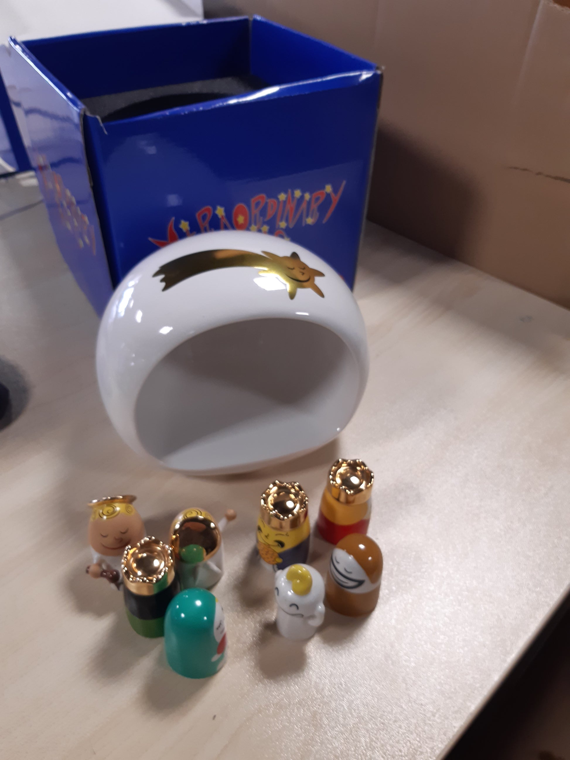 - Përfshinë: 1 shpellë, figurina të Familjes së Shenjtë, kau, gomari, tre dijetarë dhe dy engjëj; ideale për ta bërë skenën e lindjes së Krishtit më origjinale.