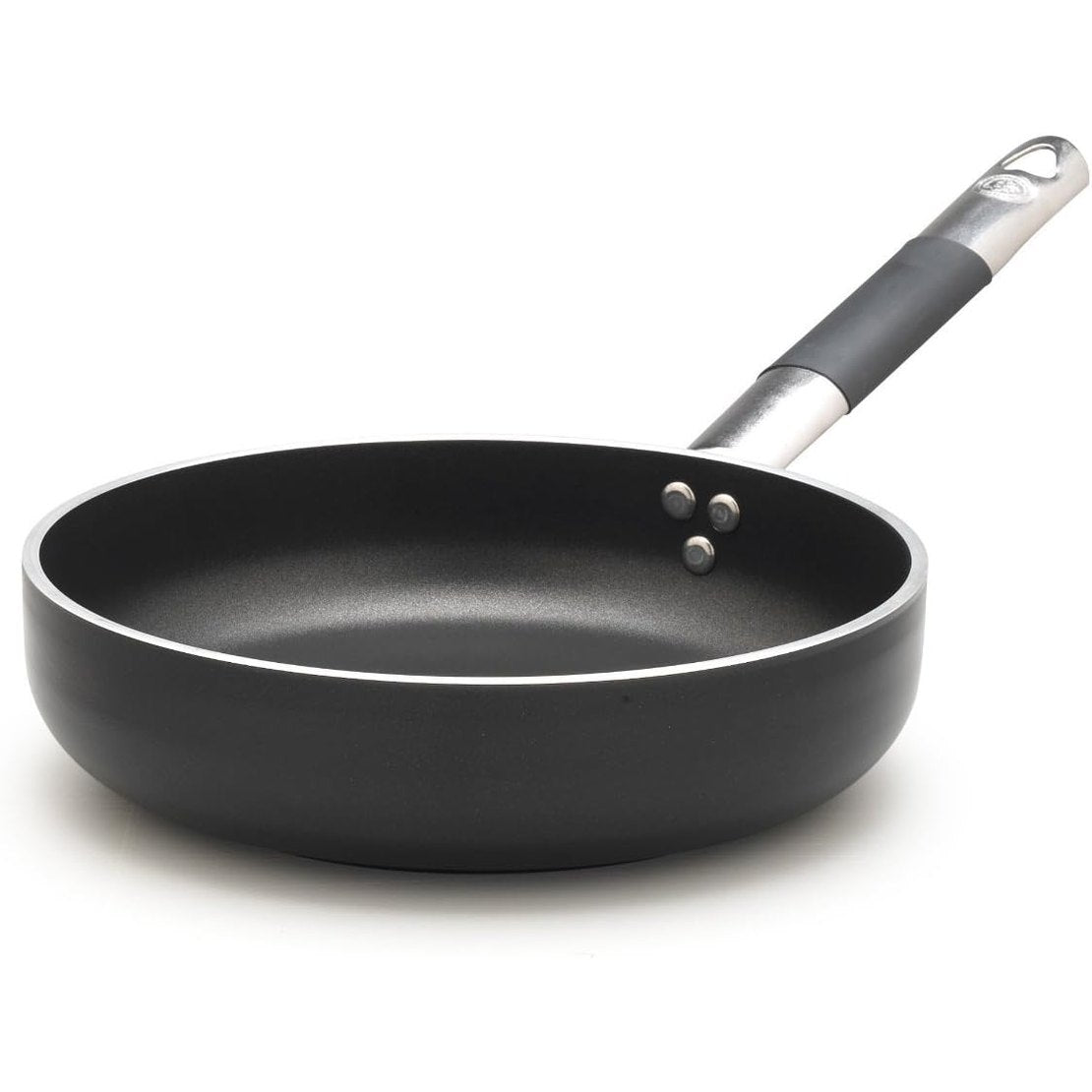 - Forma dhe Dizajni: Tigan rrethor me dorezë të vetme, me buzë të lartë dhe të drejta, dhe fund të gjerë për skuqje perfekte.