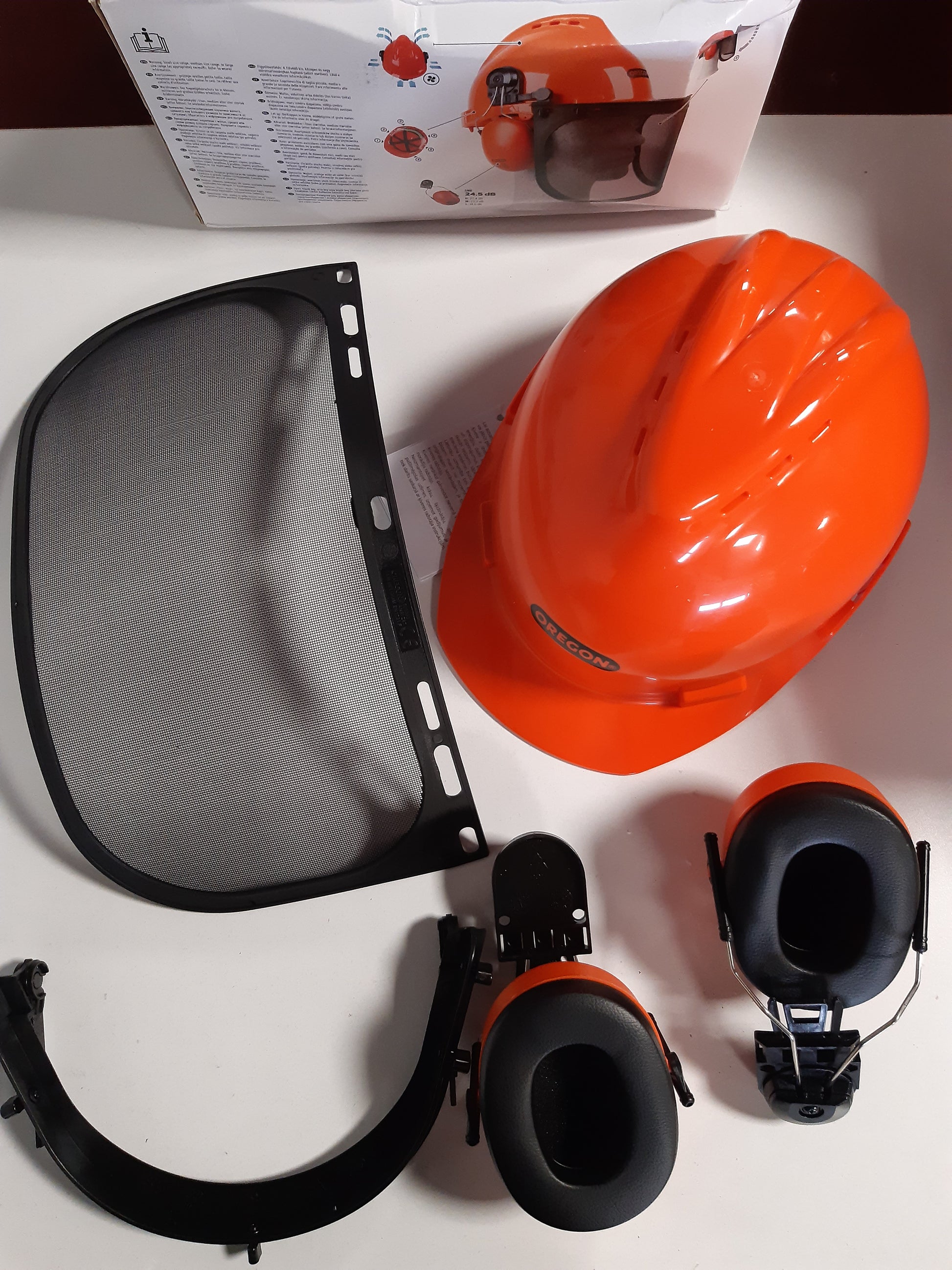 163533 - OREGON Helmë Sigurie Yukon me Mbrojtëse Veshësh dhe Vizor Rrjetë, Ideale për Punë me Sharrë Motorri dhe Makinë Prerëse Furçash