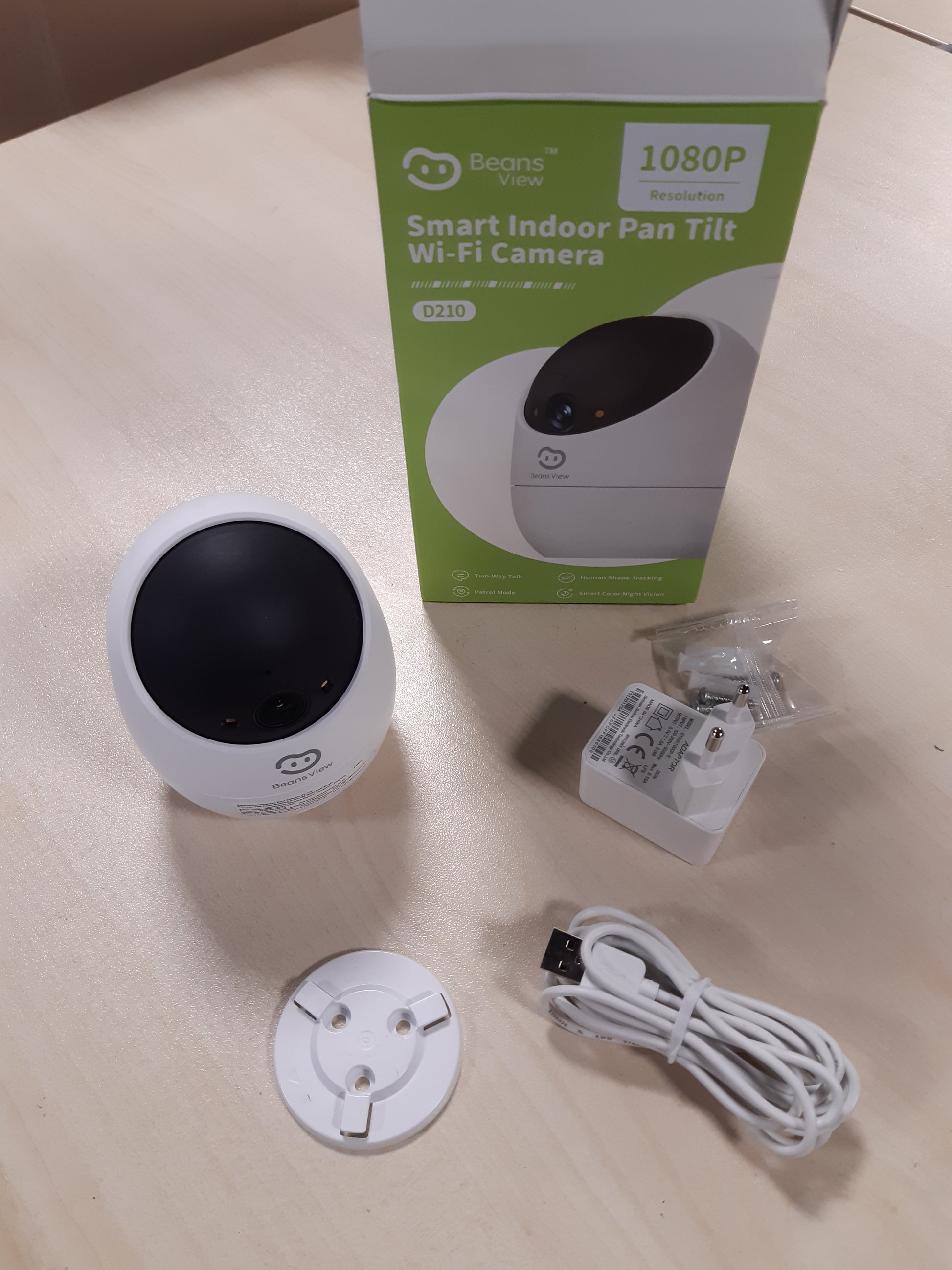 164796 - BEANS VIEW Kamerë Sigurie e Brendshme, Mbikëqyrje 360° 1080P, Wi-Fi 2.4GHz, Shikim Natën me Ngjyra, Pajisje për Foshnje, Kafshë Shtëpiake, Mace, Qen, Zbulim Njerëzor, e Pajtueshme me Alexa, Modeli D210