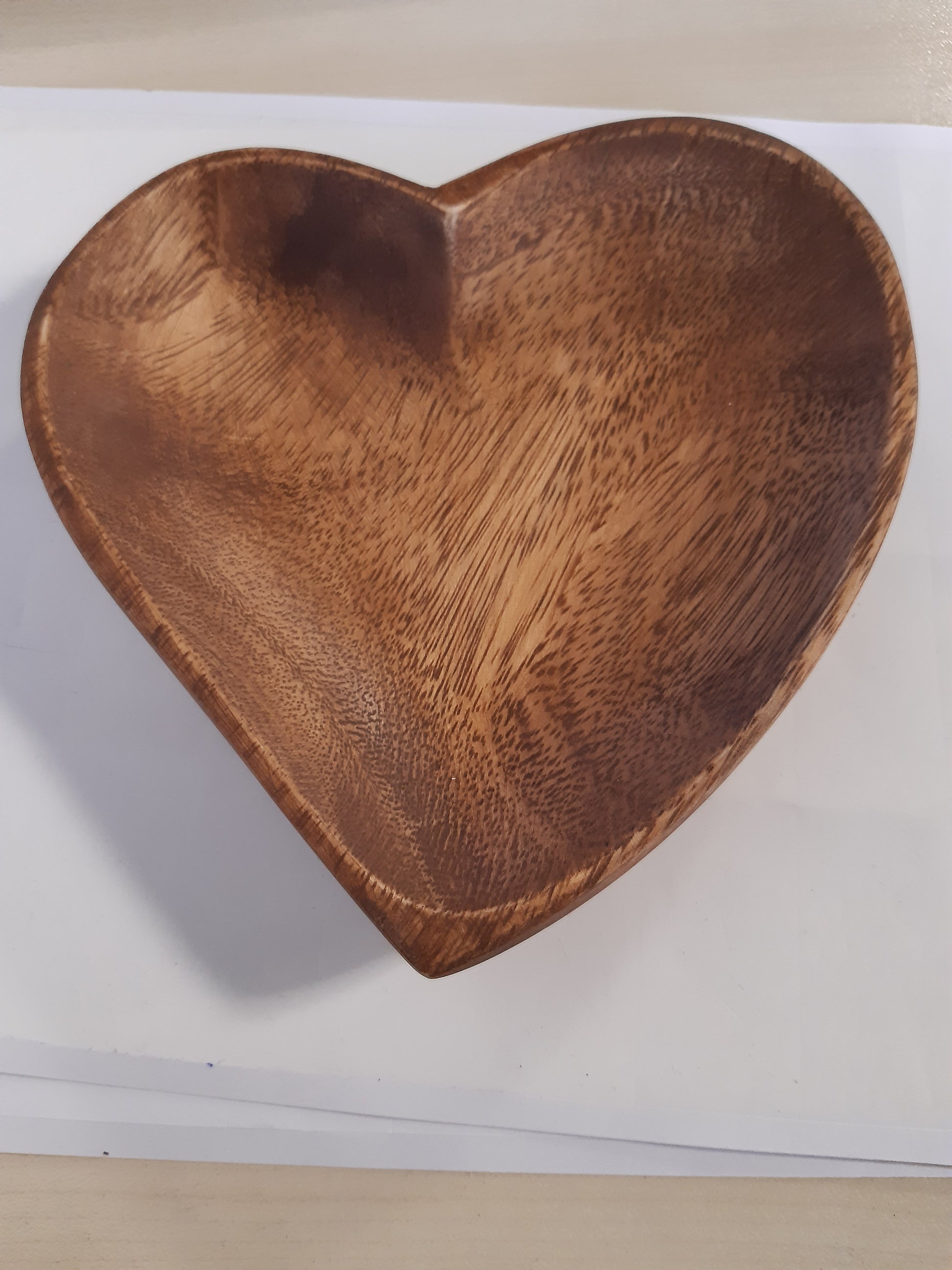 - Tas druri akacie me përmasa 15 cm, me dizajn të formës së zemrës.