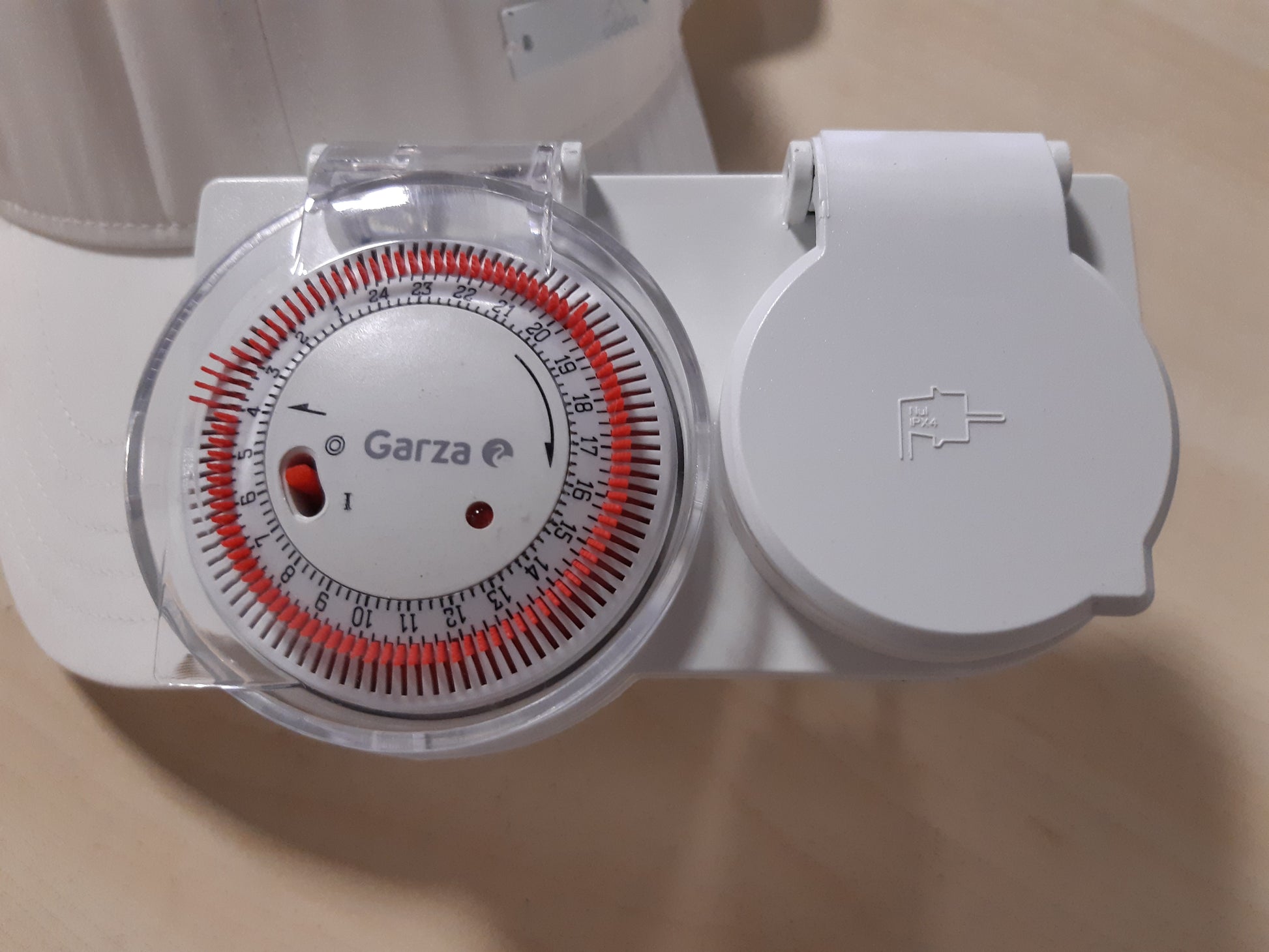 165209 - GARZA - Programues Analog i Jashtëm me Kohëmatës, Mbrojtje IP44, Spinë e Programueshme 24 Orë, Nga Materiali i Bardhë