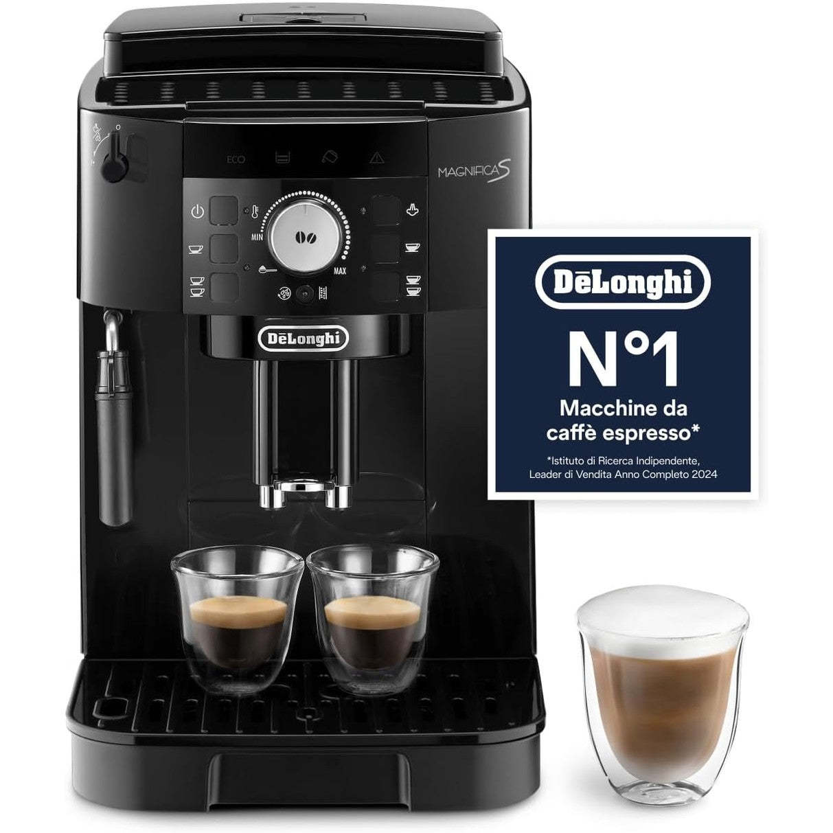 166711 - DE'LONGHI - Magnifica S ECAM11.112.B, Makinë Kafeje Automatike dhe Kapuçino, me Shkumëzues Manual Qumështi, Panel Kontrolli me Butona, Ngjyra e Zezë