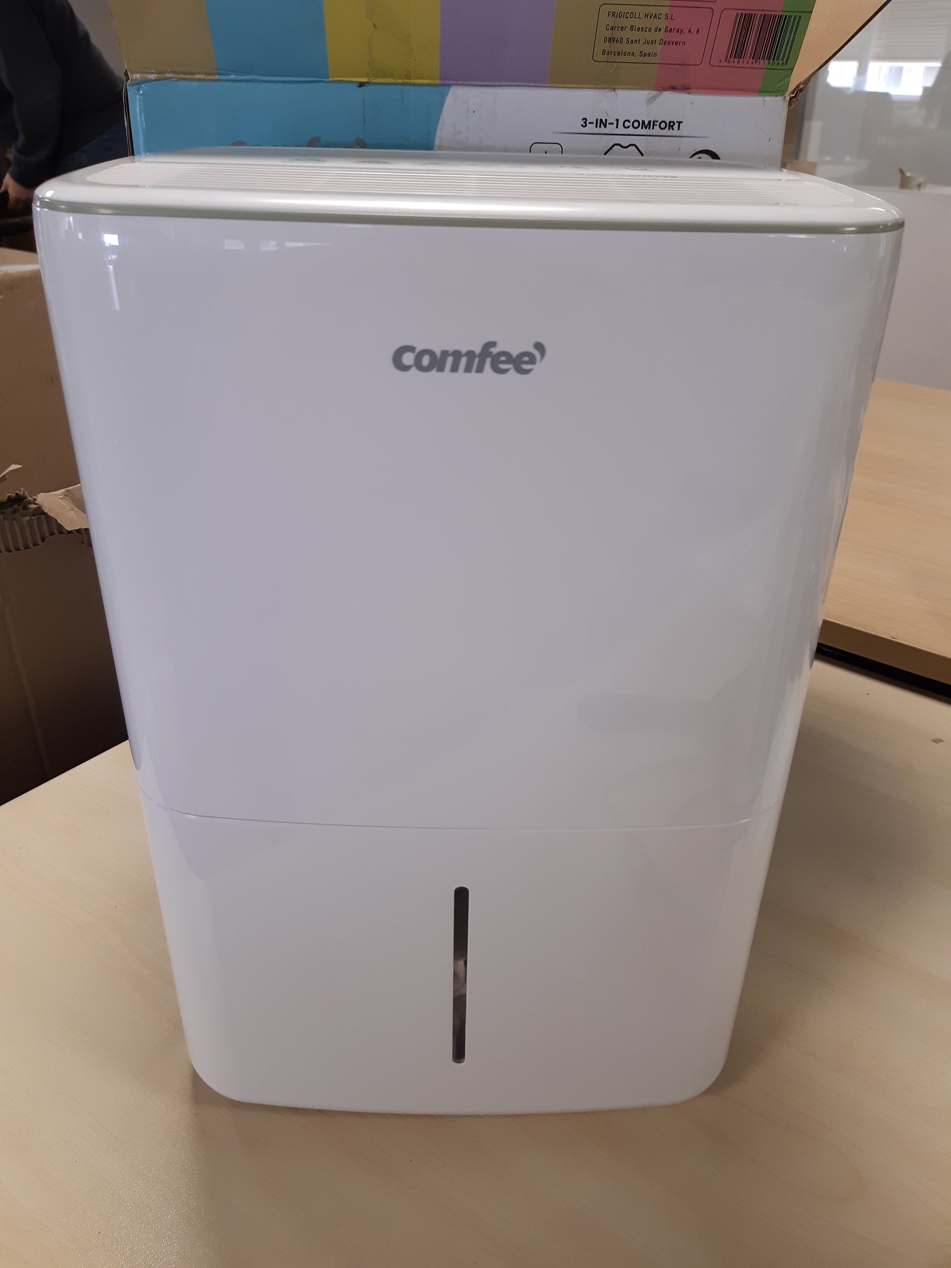 - Tharësi i lagështisë COMFEE që largon 10 litra ajër në ditë, i përshtatshëm për dhoma deri në 16 metra katrorë, me nivel lagështie midis 45% dhe 55%.