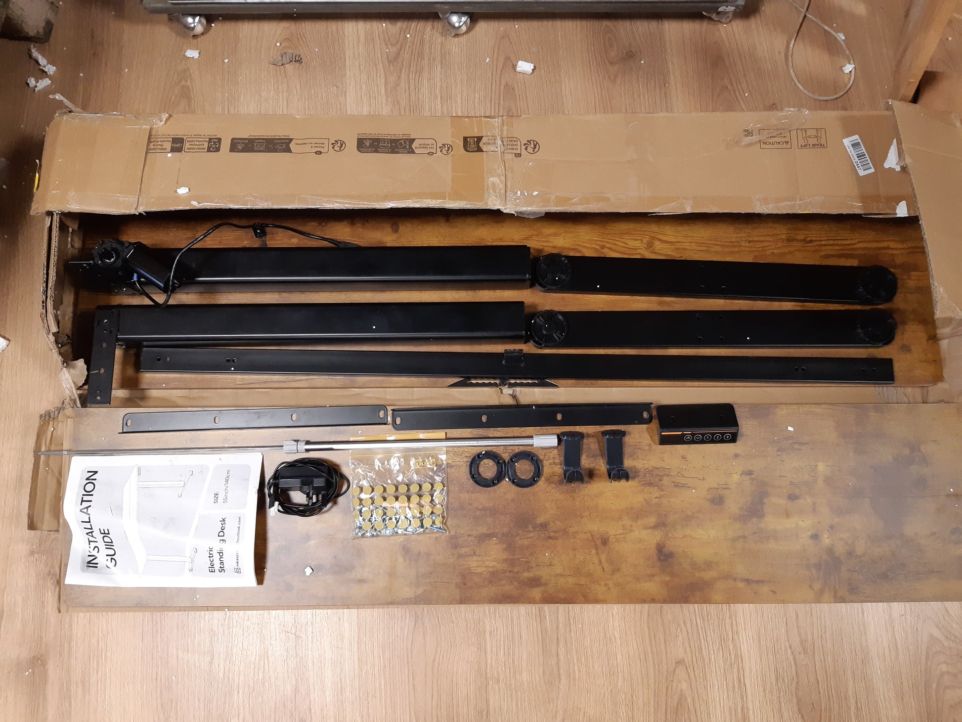 167021 - CLAIKS Tavolinë Elektrike në Këmbë të Rregullueshme 140x60cm, Bord Ndërlidhës, Për Zyrë apo Shtëpi, Kornizë e Zezë/Sipërfaqe Kafe