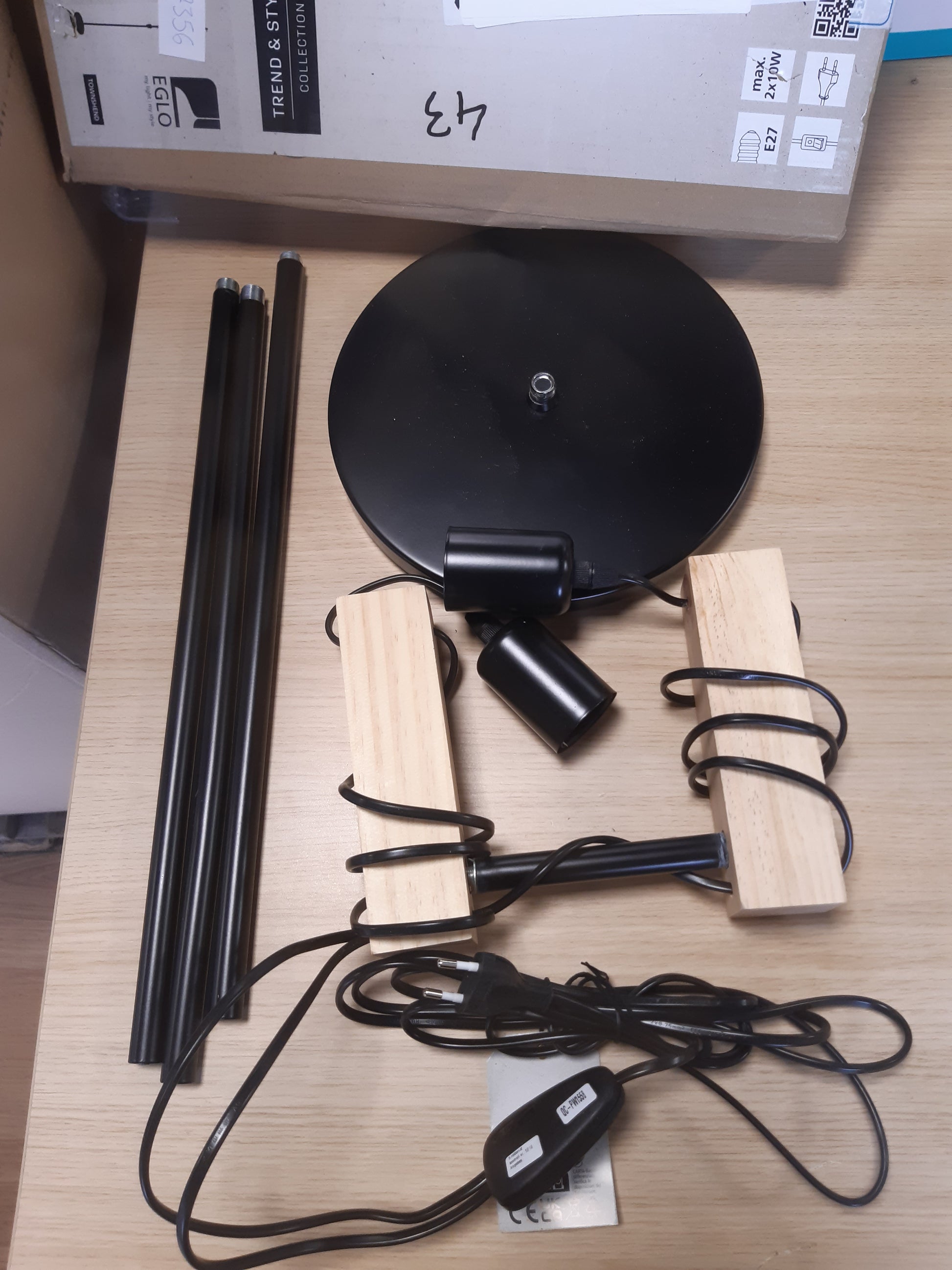167356 - EGLO TOWNSHEND - Llambë Dyshemeje me 2 Drita, Dizajn Industrial, Material Çeliku dhe Druri, Ngjyrë e Zezë dhe Kafe, Prizë E27, Certifikatë FSC, Çelës i Përfshirë