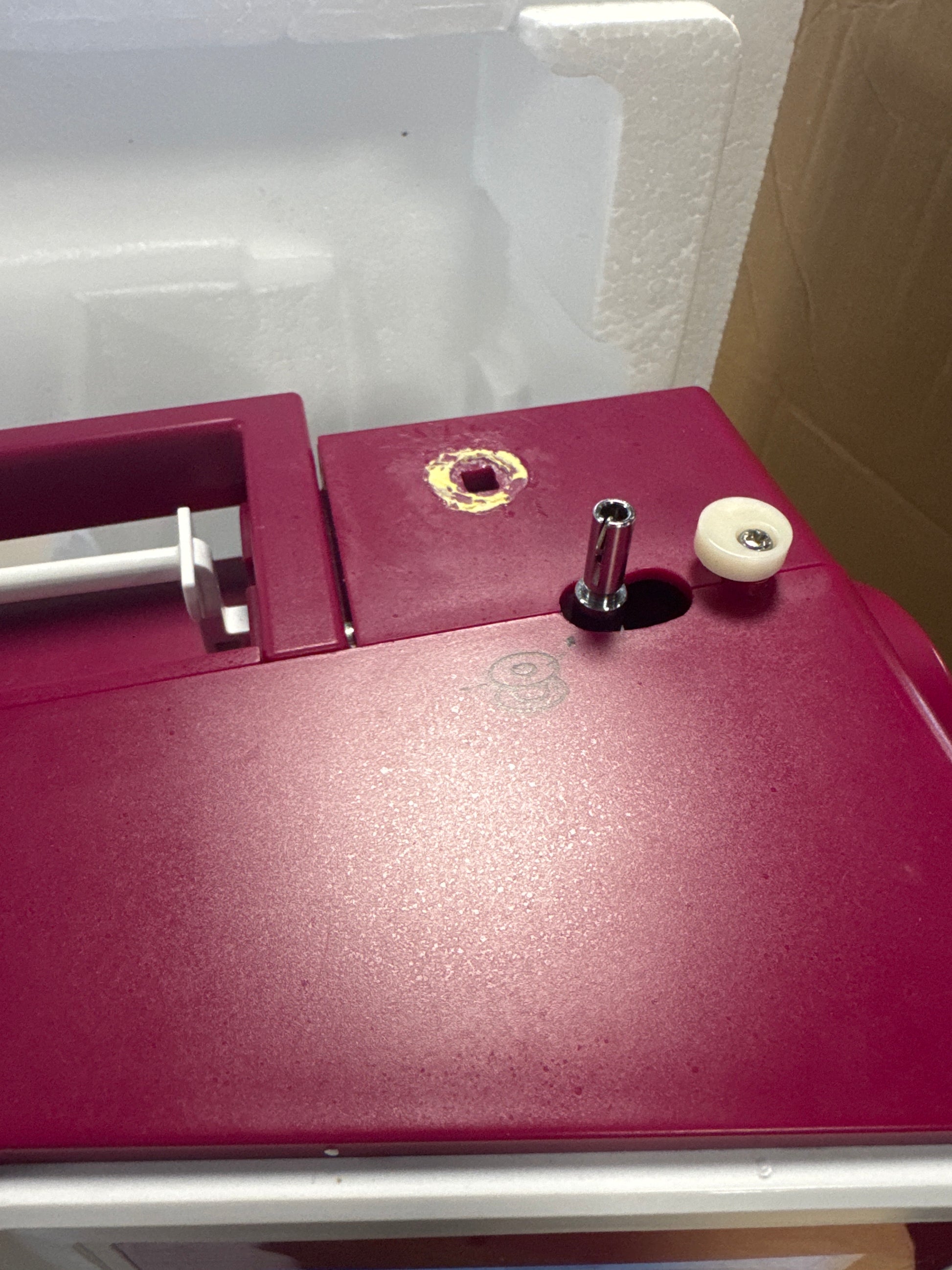 - Aksesore standardë përfshijnë shtatë këmbë presioni të ndryshme, të ruajtura në një kuti të praktikshme për lehtësinë e projekteve të qepjes.