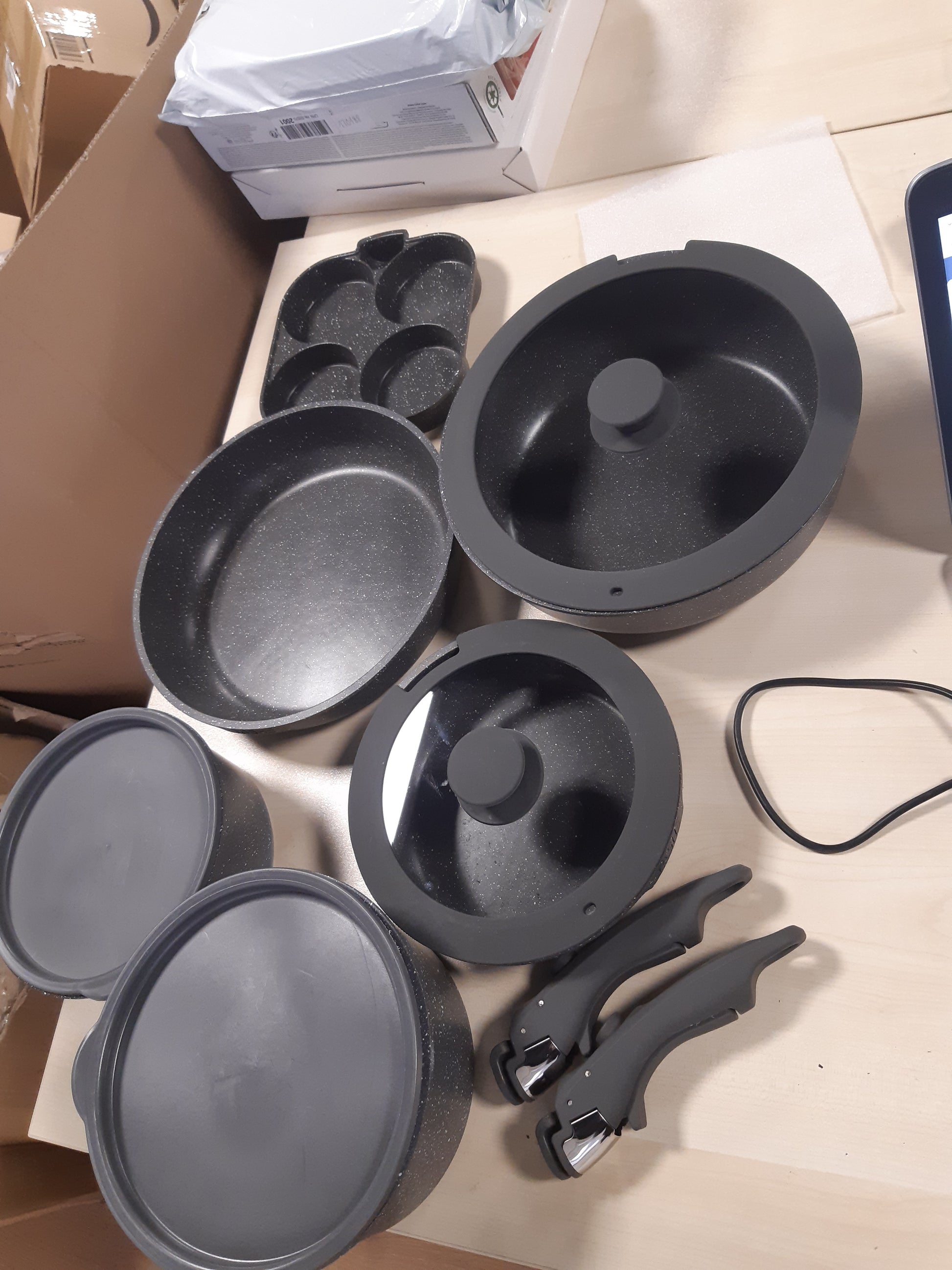 - Set i përbërë nga 20 pjesë të nevojshme për gatim të përditshëm, përfshirë tenxhere, tiganë dhe enë të ndryshme.
