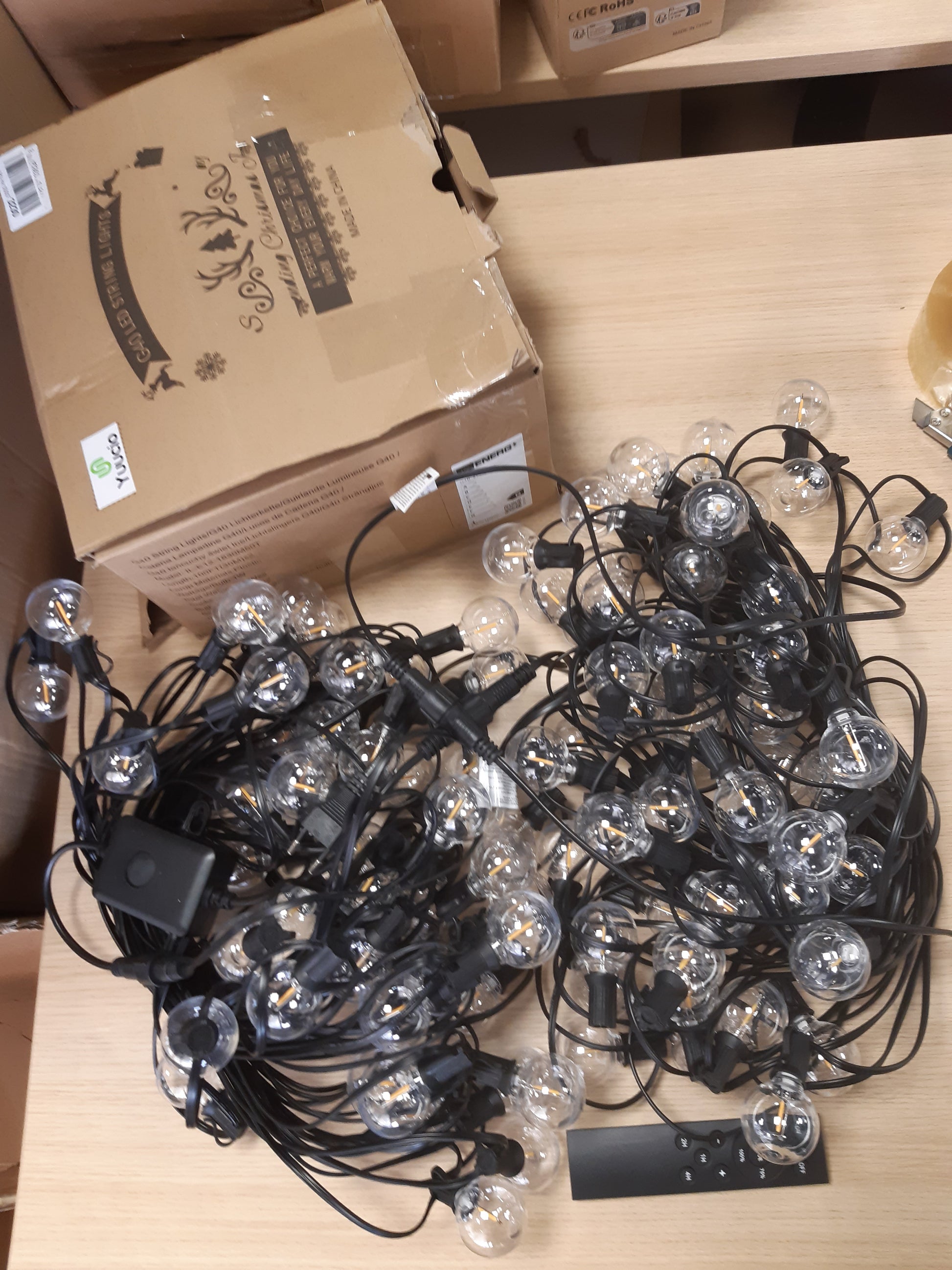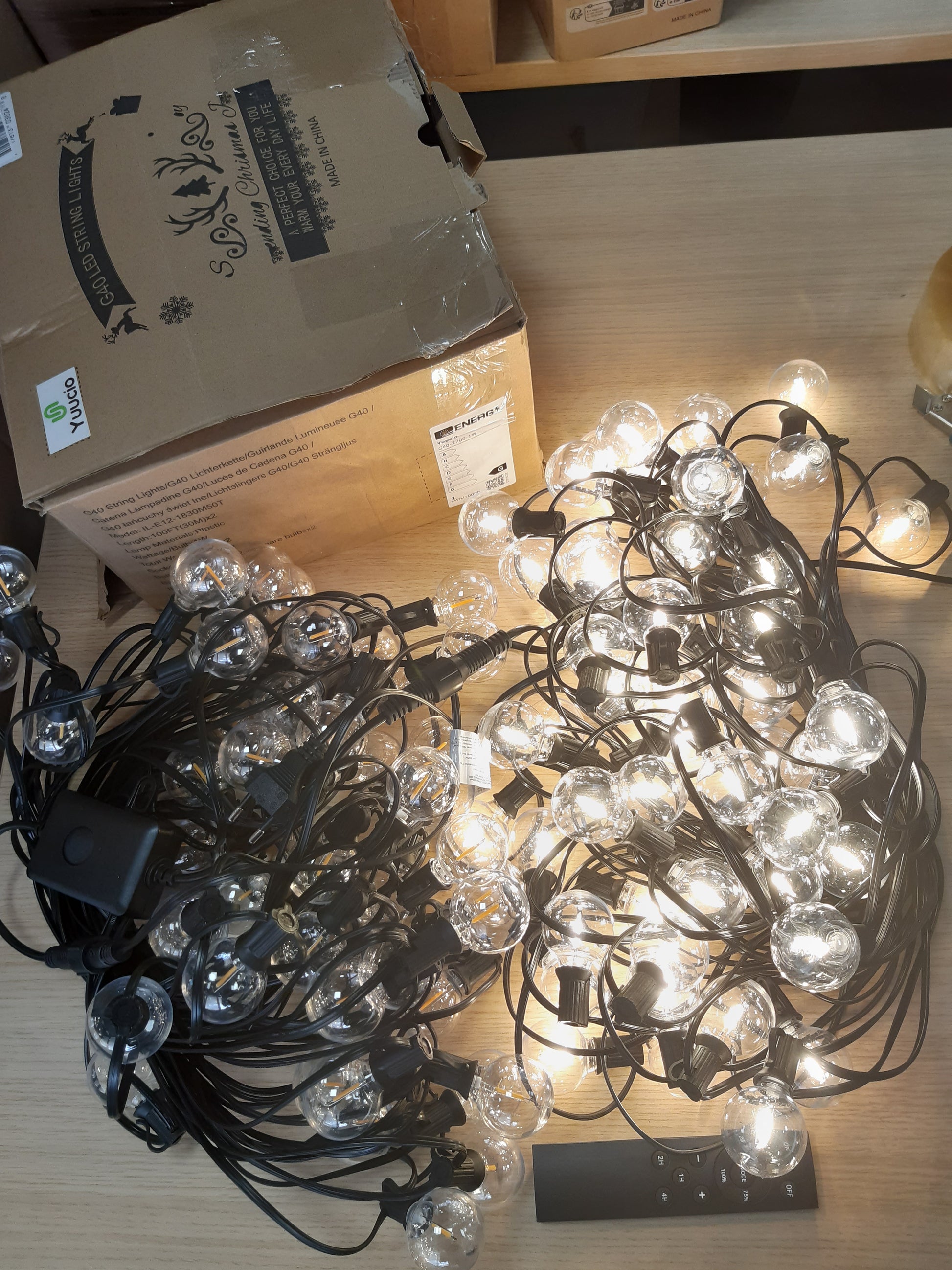 - Dritat LED me tela të jashtme gjithsej 60m (2 x 30m për pako), me 1 telekomandë dhe 1 adaptor energjie, dhe 104 llamba plastike, emiton dritë të bardhë të ngrohtë ideale për atmosferë komode të jashtme.