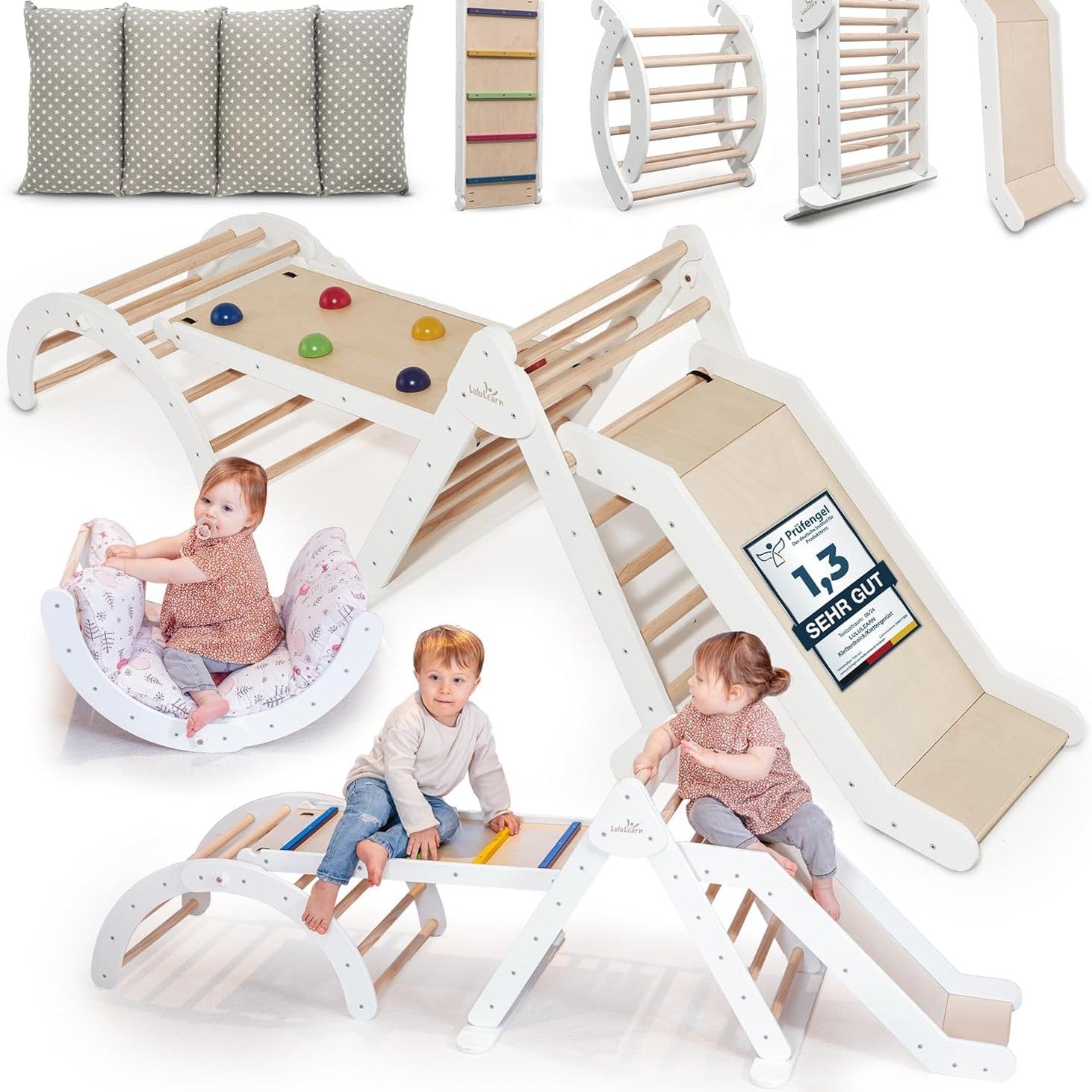 175029 - LULULEARN Trekëndësh Ngjitjeje 4-në-1, Hark dhe Rampë Rrëshqitëse, Material i Palosshëm, Përdorim të Brendshëm dhe të Jashtëm, Për Fëmijët 1+ Vjeç, Mësim Aktiv Montessori (E Bardhë)