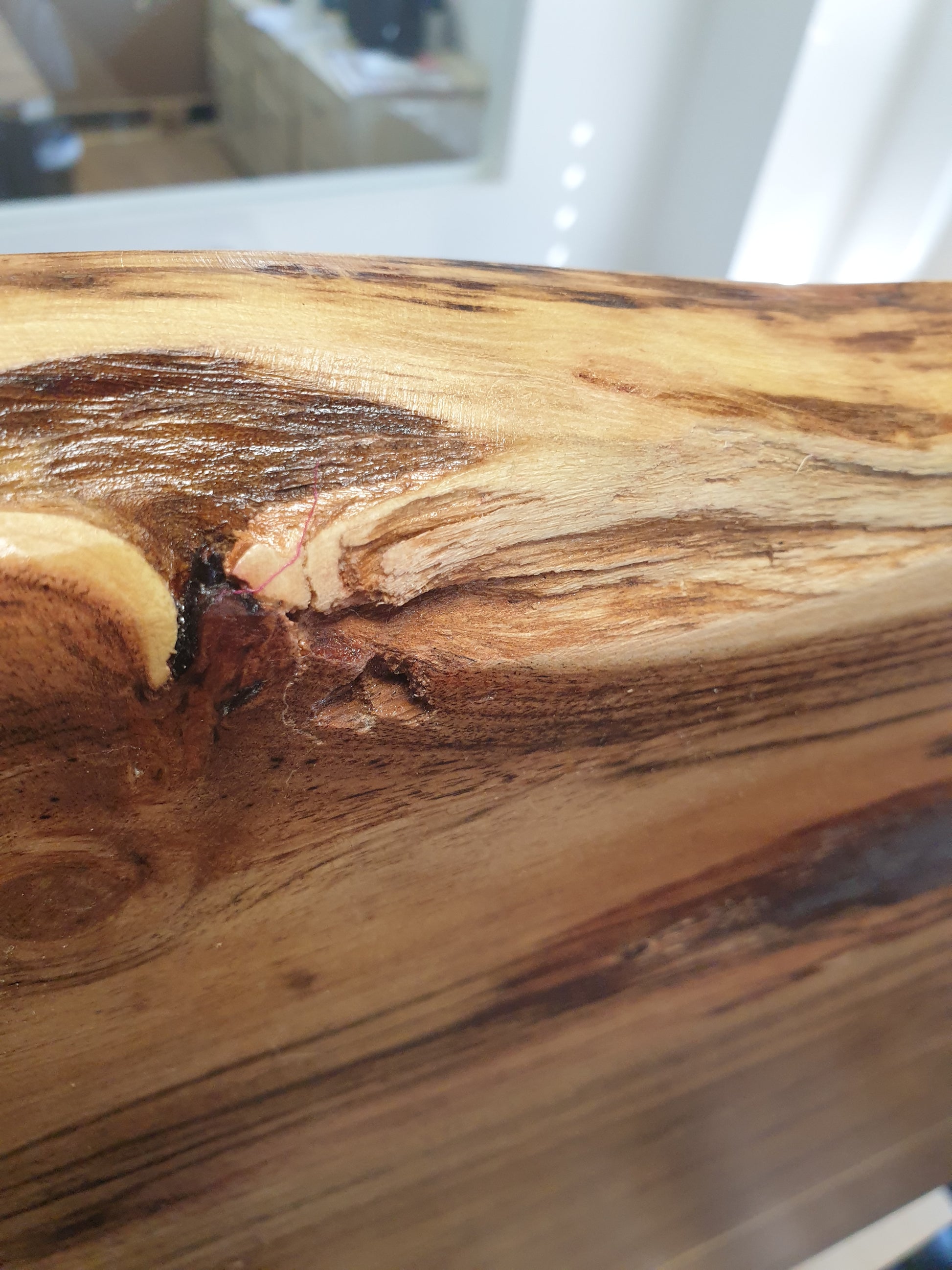 • E punuar nga **dru akacie solid me skaj të natyrshëm (live edge)**, që ofron pamje elegante dhe të ngrohtë.