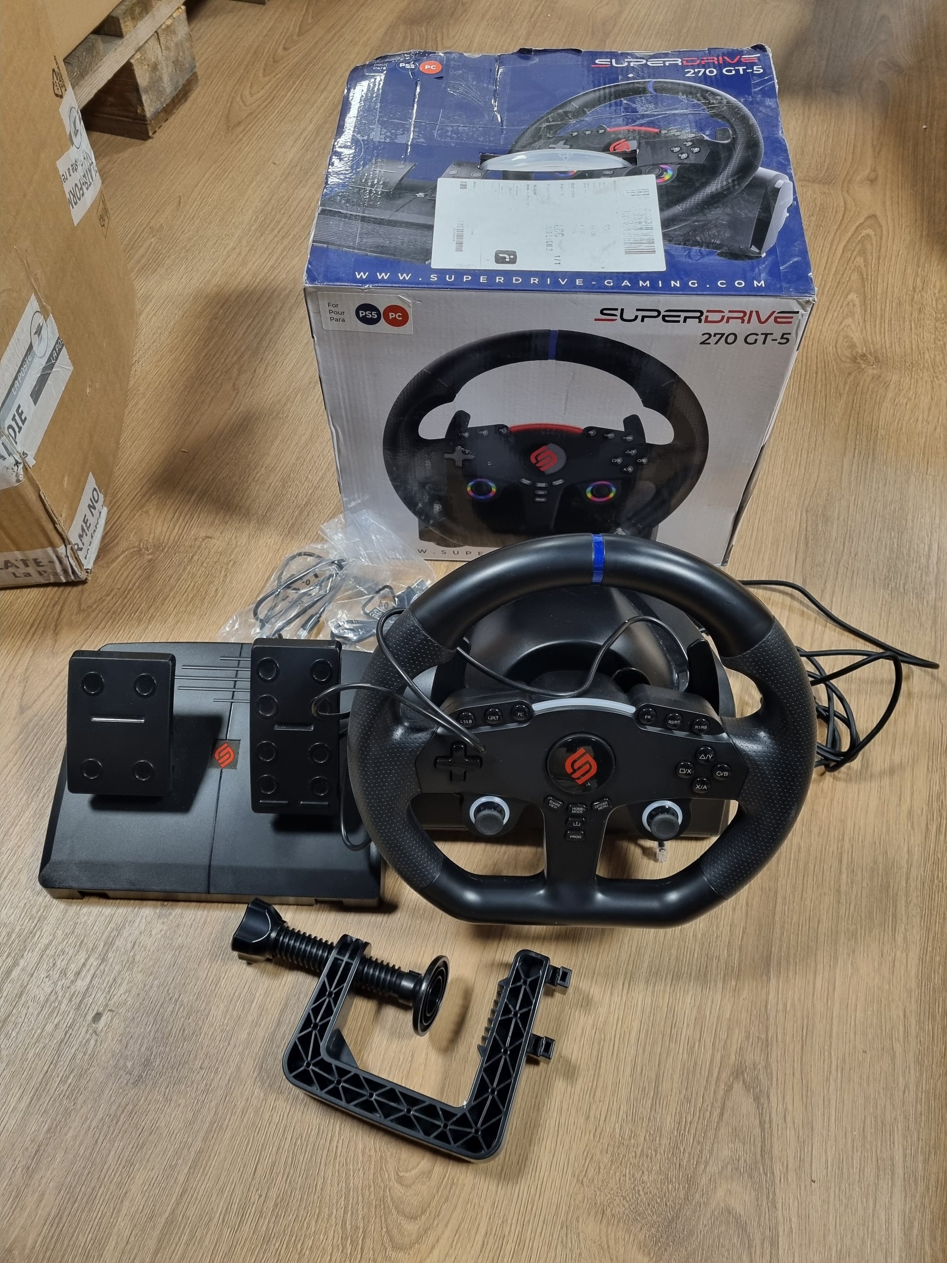 188708 - SUBSONIC - Timoni Superdrive 270 GT-5 me Dy Levë LED, Rrotullim 270°, Pedale dhe Levë Ndërrimi Marshësh, i Zi, i Pajtueshëm me PS5 dhe PC