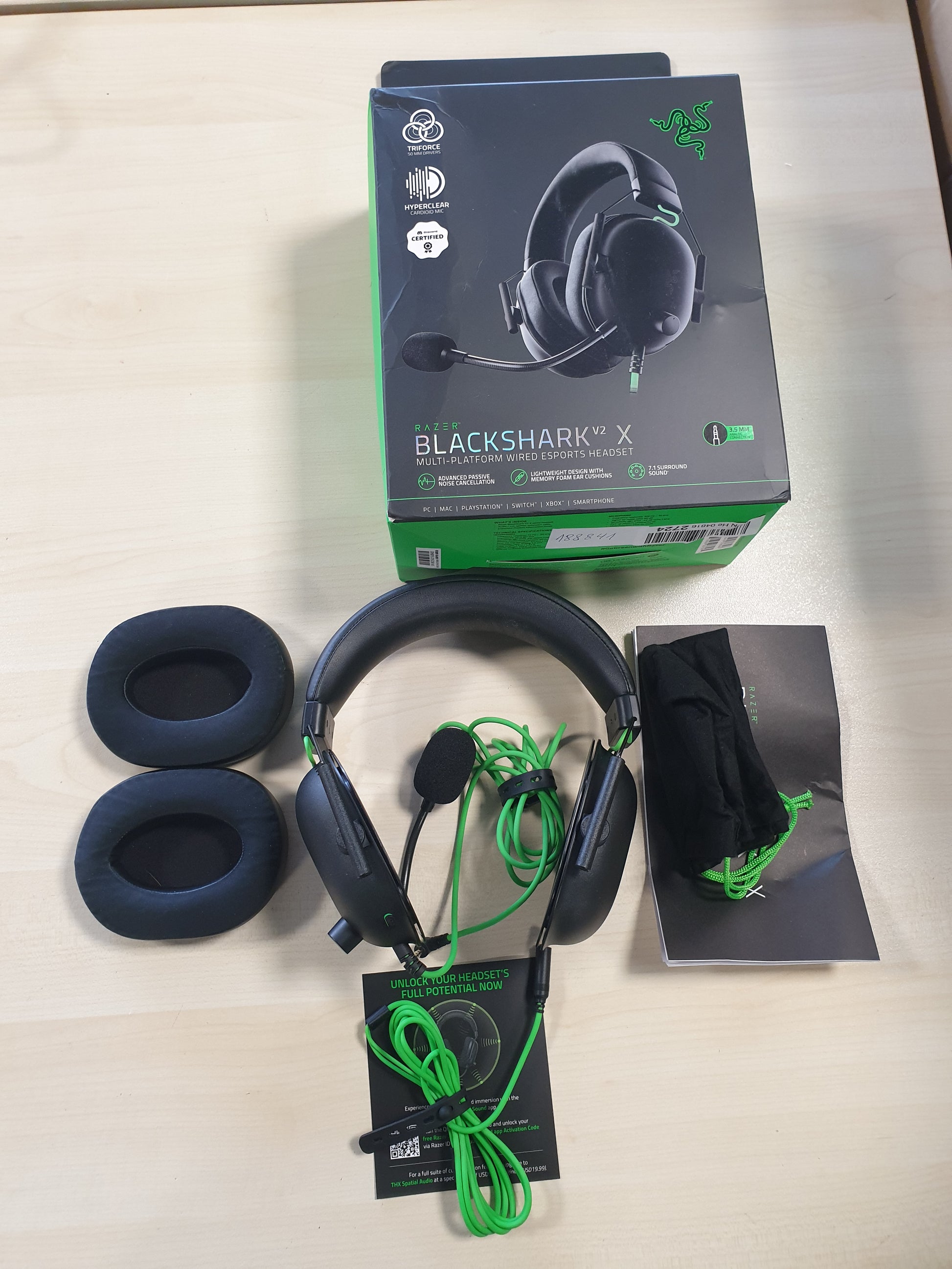 188841 - RAZER BlackShark V2 X - Kufje Lojërash për Sporte Elektronike me Shumë Platforma, Drejverë Triforce 50 mm, Anulim i Avancuar Pasiv i Zhurmës, Tingull Surround 7.1, Mikrofon Kardioid, Ngjyre e Zezë
