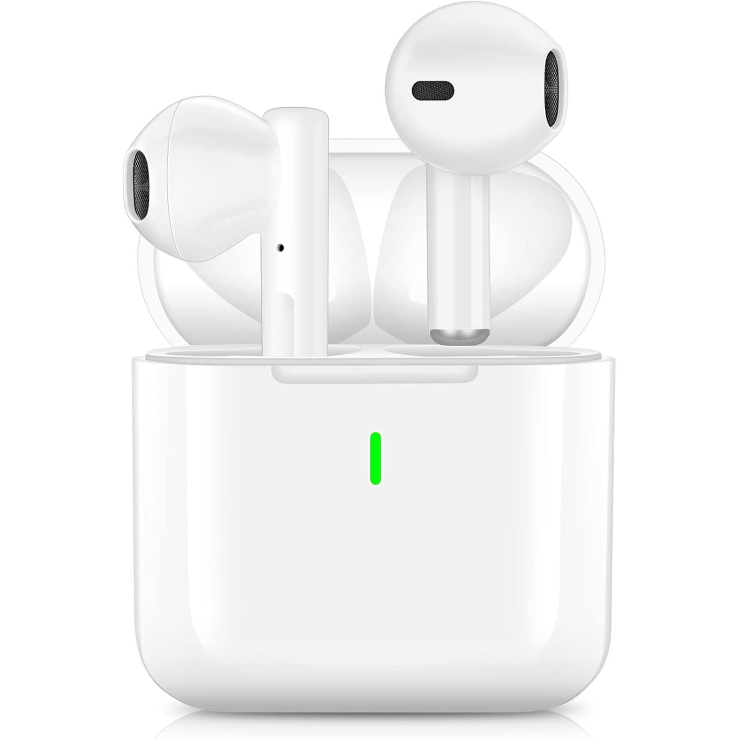189571 - TOPMEG Kufje Bluetooth pa tel, Stereo Sound HiFi, Mikrofon i integruar HD, Kontroll me prekje, Rezistent ndaj ujit IPX7, Kohë loje 35 orë, për Telefonat iOS dhe Android, të bardha