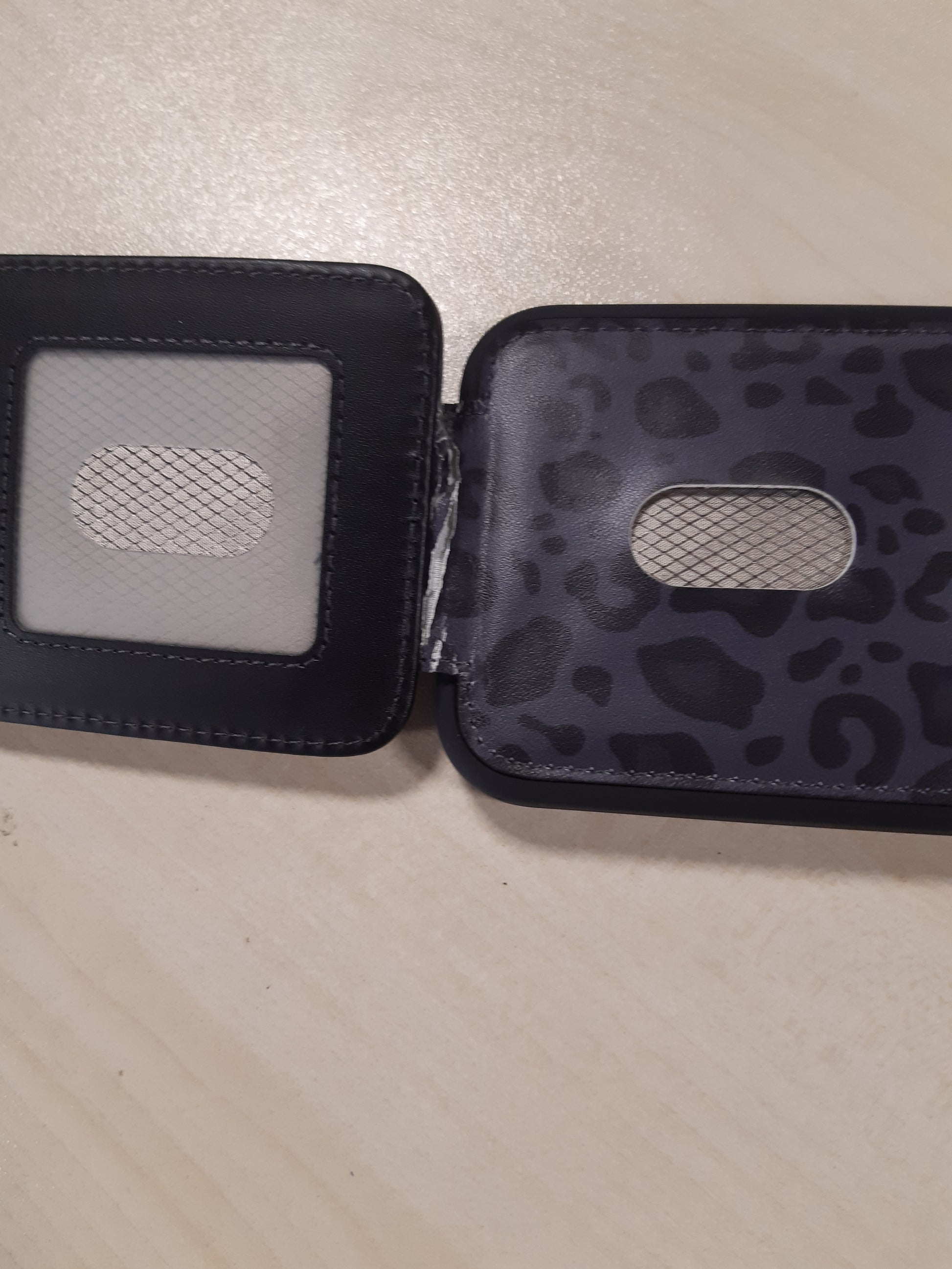 - Ka një mbajtës kartash për kredit, I përshtatshëm për të ruajtur kartën tuaj të identitetit, licencën e shoferit, kartë ATM, etj., duke ju ofruar komoditetë praktike.
