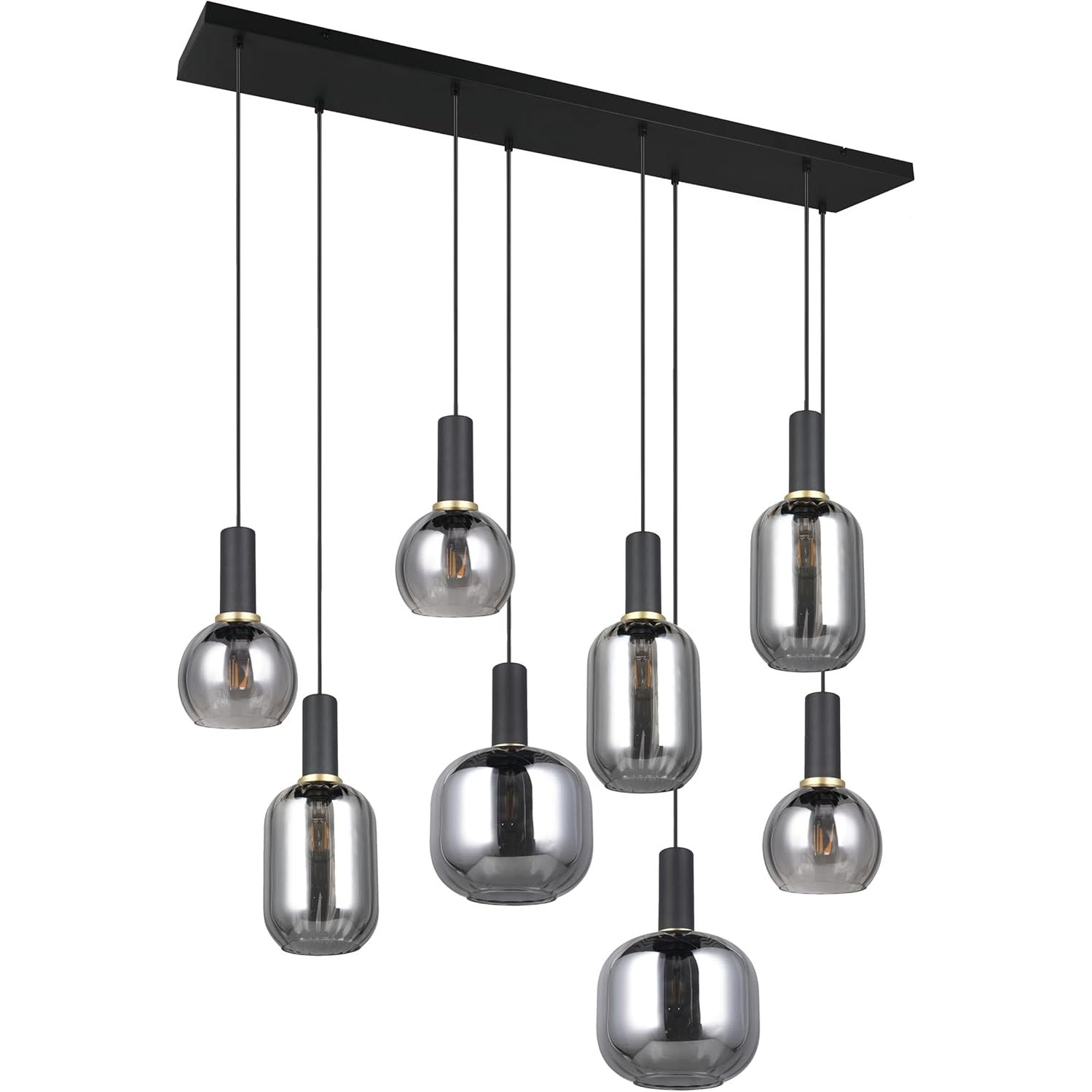 191026 - TRIO LEUCHTEN Dritë Varëse DIVA 319800832, Metal i Zi Mat, Xham i Spërkatur me Krom, Pa Përfshirë 8 Llamba E27