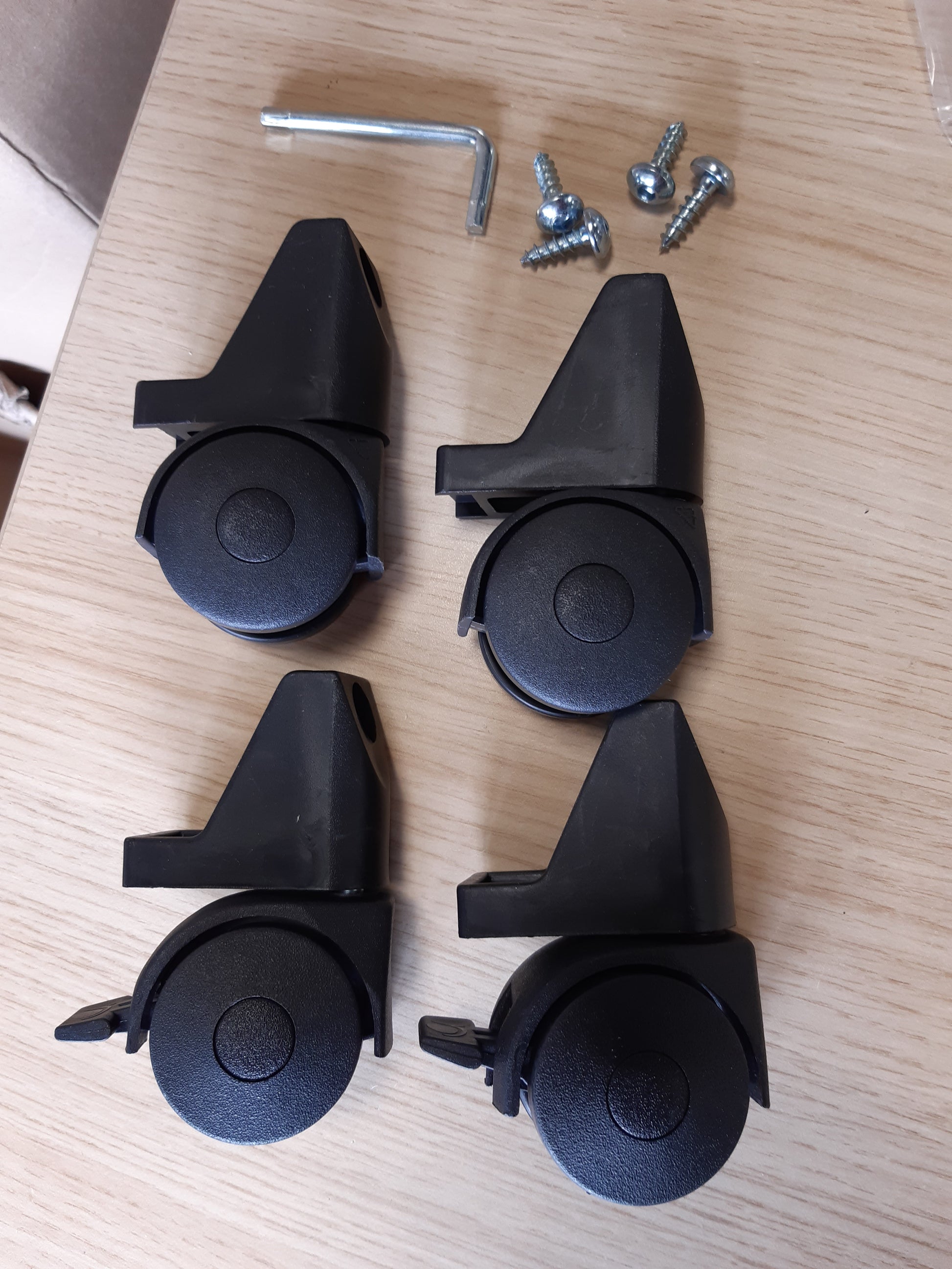 - Përfshin 4 rrota për lehtësi manovrimi, 2 prej të cilave kanë frena për siguri shtesë.