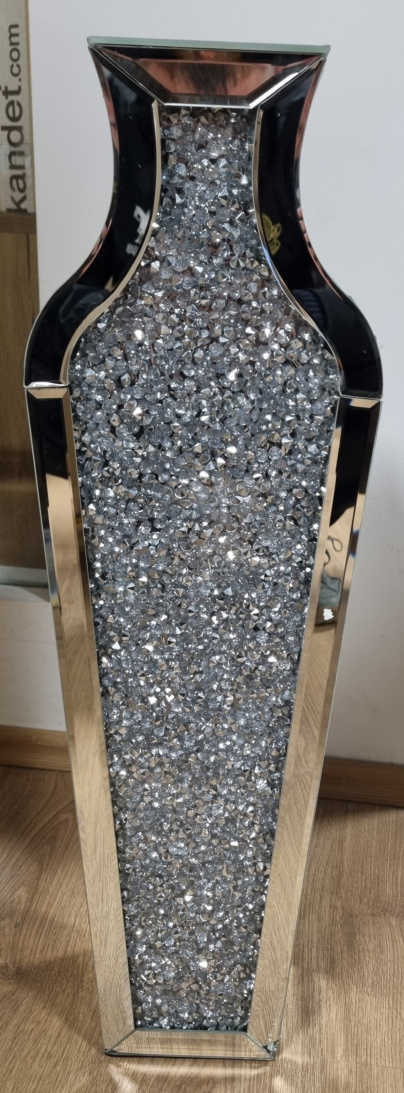 191087 - SHYFOY Vazo Dyshemeje e Madhe 68 cm e Lartë, me Pasqyrë, prej Qelqi me Diamante Kristali, Strukturë MDF, për Bimë Artificiale dhe Bar Pampas, Argjend