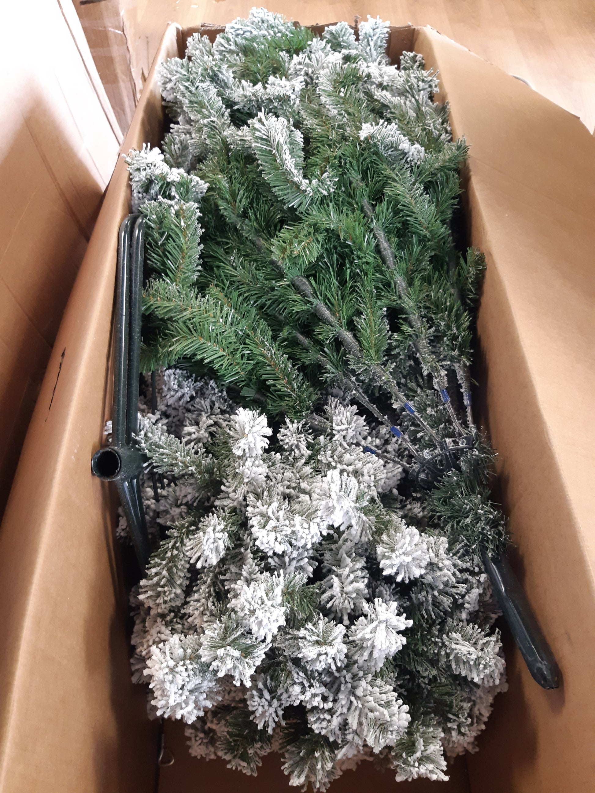 195046 - BAKAJI Pemë Krishtlindjesh Danub, me pishë të gjelbër të mbuluar me borë, bazë kryqëzuese hekuri, Degë super të trasha me cilësi të lartë, montim i lehtë, 210 cm