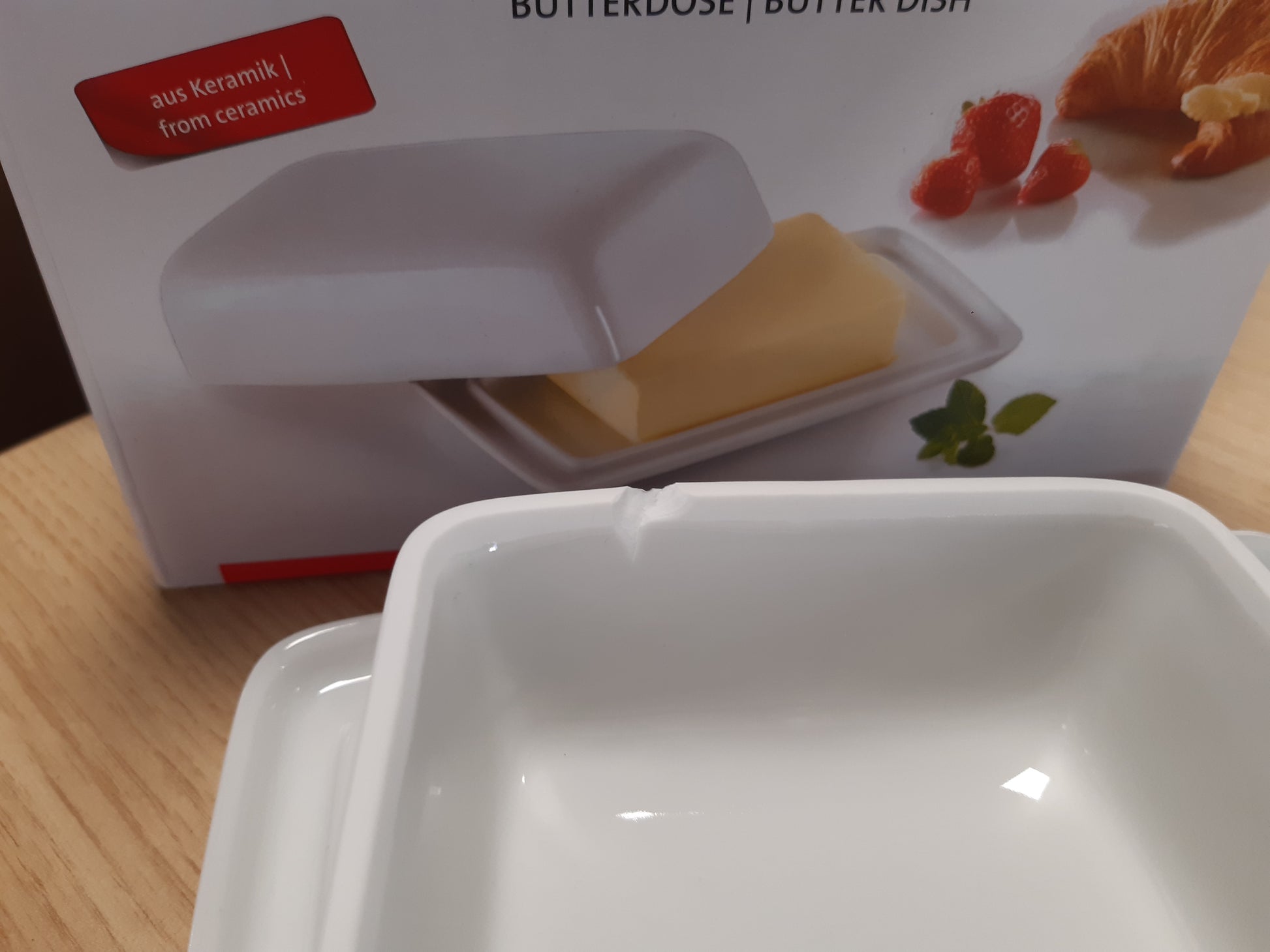 - Enë me gjalpë e bërë nga qeramika e fortë, rezistonte dhe e lehtë për tu pastruar