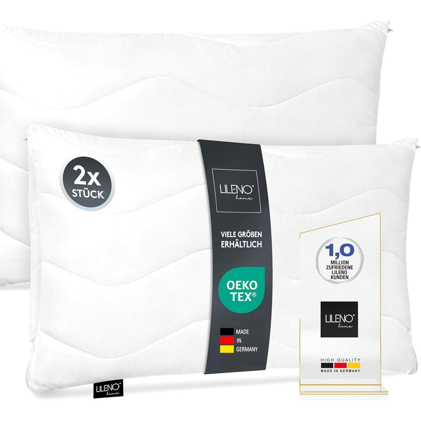 198140 - LILENO HOME - Set Jastëkësh 40x60cm (2 copë), të Lavejshëm në 95°C, Oeko-Tex, Prodhuar në Gjermani - Jastëk i Rregullueshëm dhe Miqësor ndaj Alergjive, pa Erë, Jastëk i Butë për Lëkurën