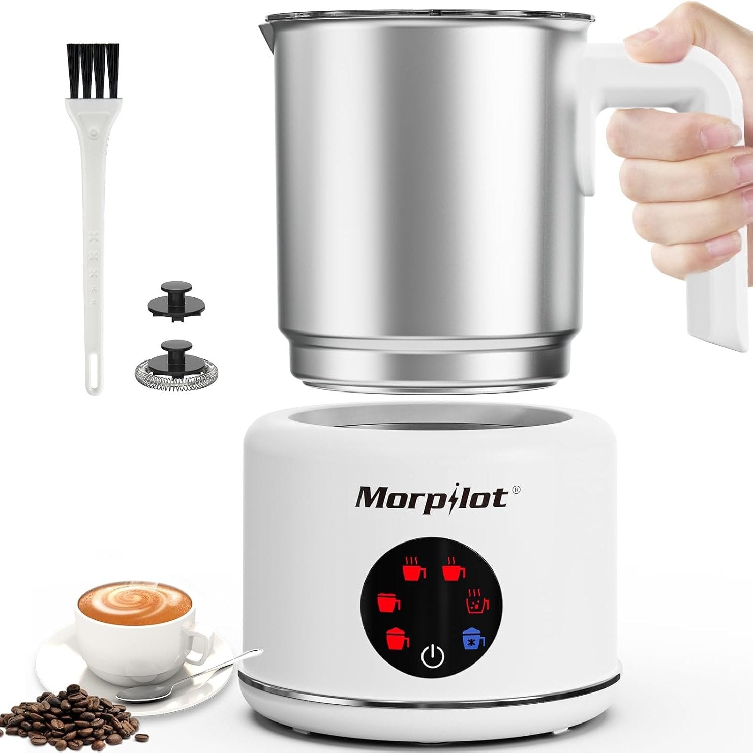 199259 - MORPILOT Shkumëzues Qumështi Elektrik 6-në-1, Kapaciteti 500ml, Fuqia 600W, Për Shkumë të Nxehtë dhe të Ftohtë, Kakao, Qumësht të Nxehtë, i Mundshëm për Lavatriçe, Materiali prej Çeliku Inoks, i Përshtatshëm për Cappuccino, Macchiato, Latte