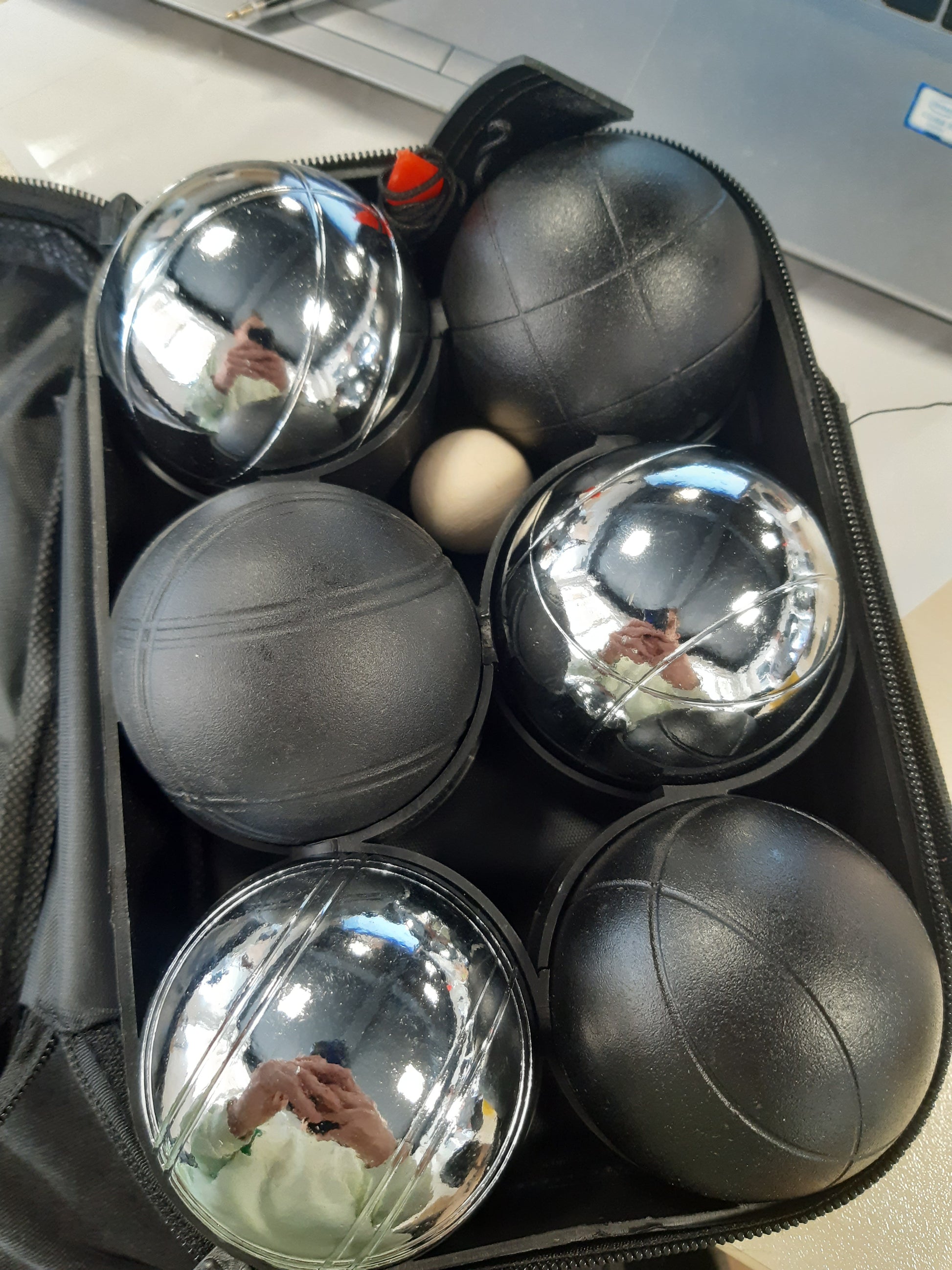 - Set petanke përfshin 6 topa të bërë nga metali, krik druri për shënjestër dhe gotë matëse.