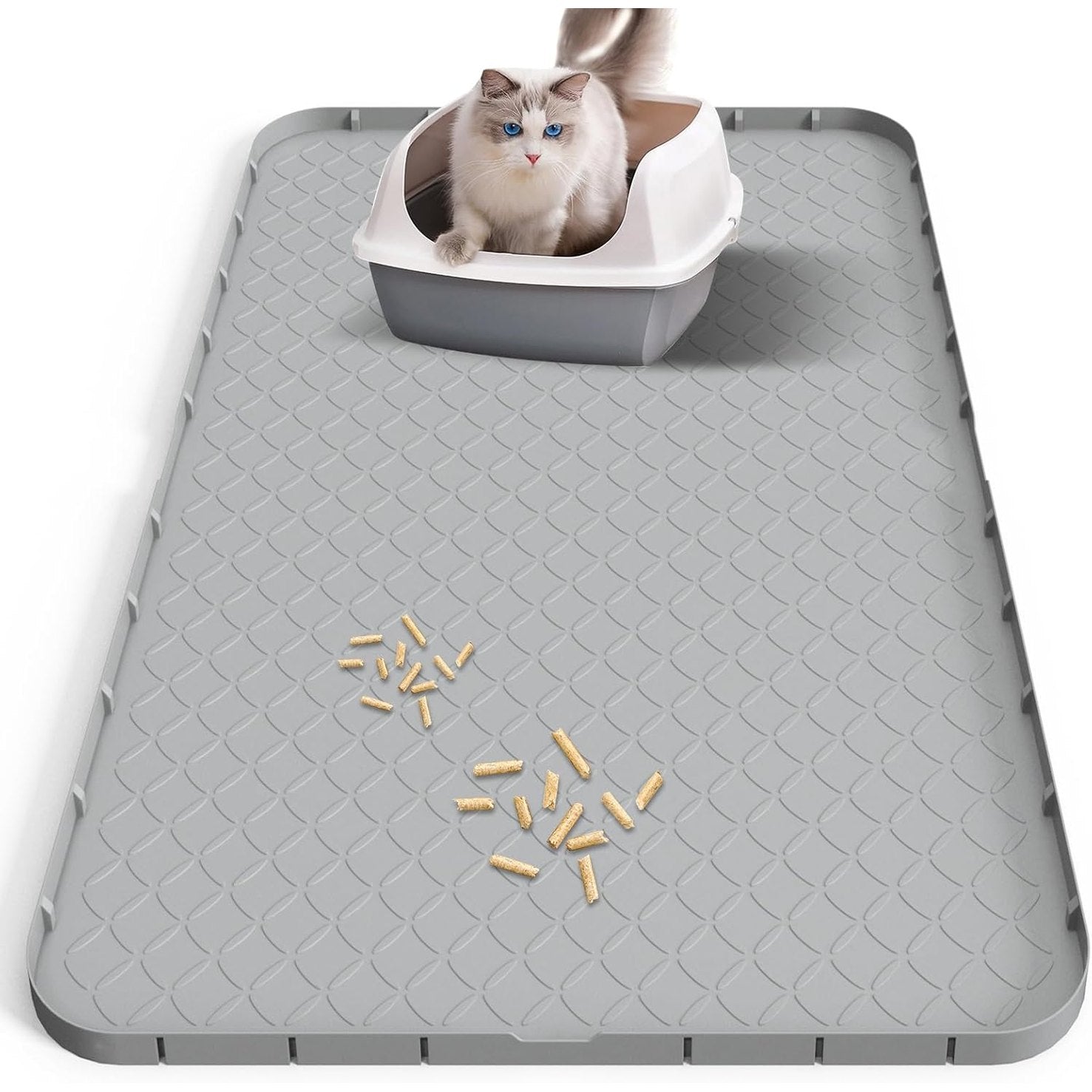202173 - DYSHEME prej SILIKONI, XXL 88 x 56 cm, i papërshkueshëm nga uji, jo i rrëshqitshëm, i lehtë për t’u pastruar, gri, e përshtatshme për putrat e maceve, për tasat dhe kutitë e maceve