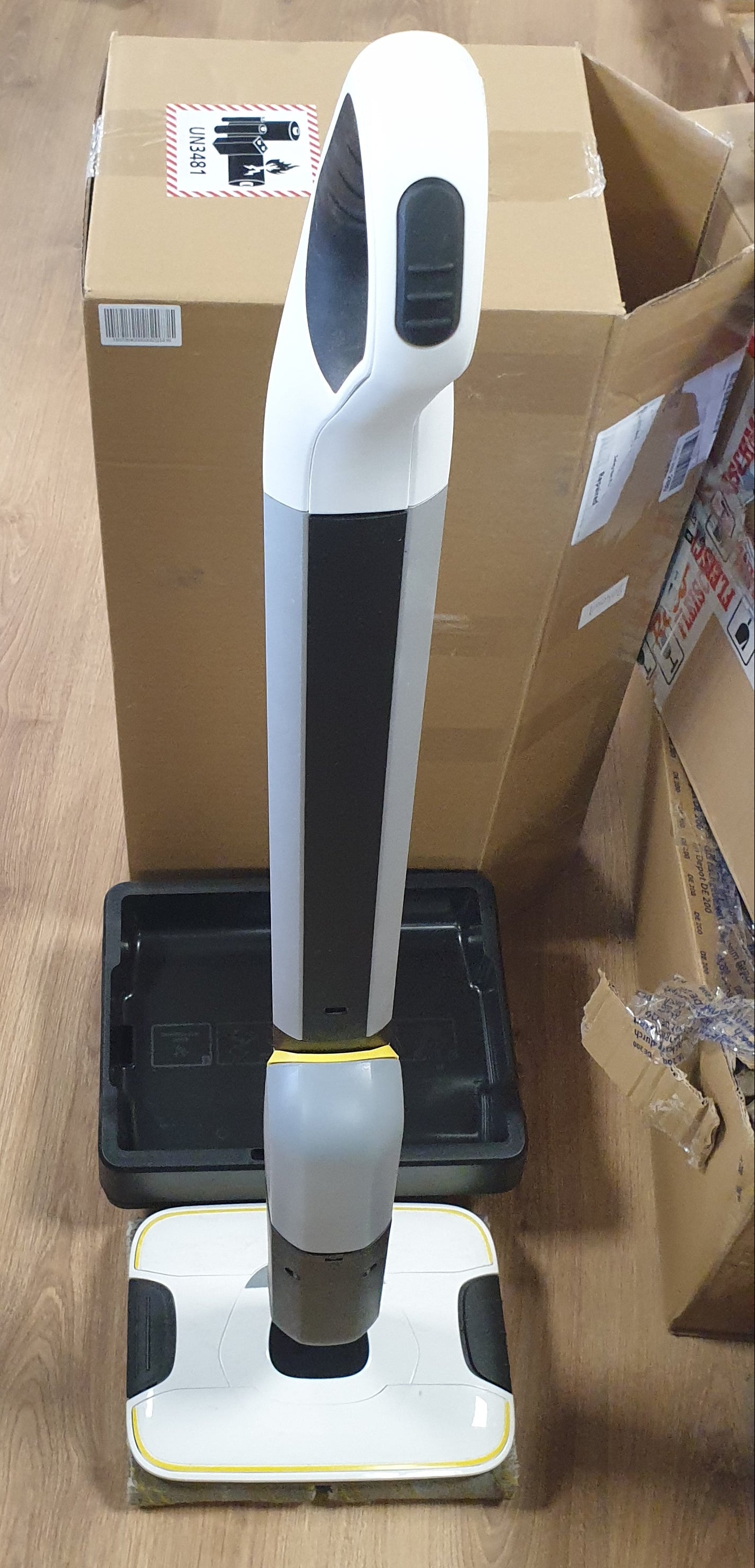 - Produkti përfshin pastruesin pa tel Kärcher FC 7, 2 palë rulësh, pastruesin Universal RM 536 30 ml, stacion parkimi dhe larjeje, karikues dhe furçë pastrimi.
