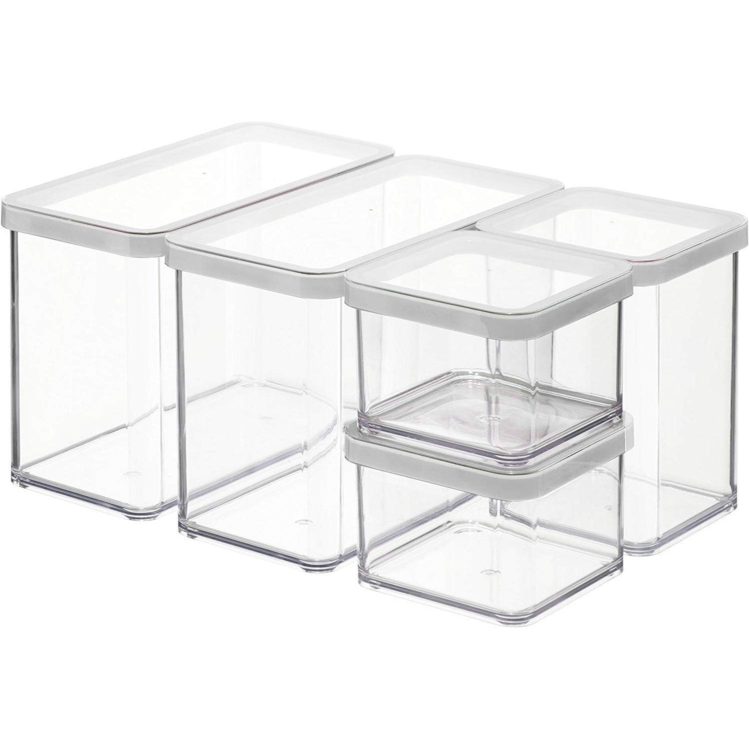 204833 - ROTHO LOFT Seti me 5 Enë Ruajtjeje, Madhësi të Ndryshme, Plastikë e Gradës Ushqimore (PP), Pa BPA, Kapacitete të Ndryshme: 2x2.1L, 1x1.0L, 2x0.5L, Dimensione: 30.0x21.0x15.0cm, Transparente/E Bardhë