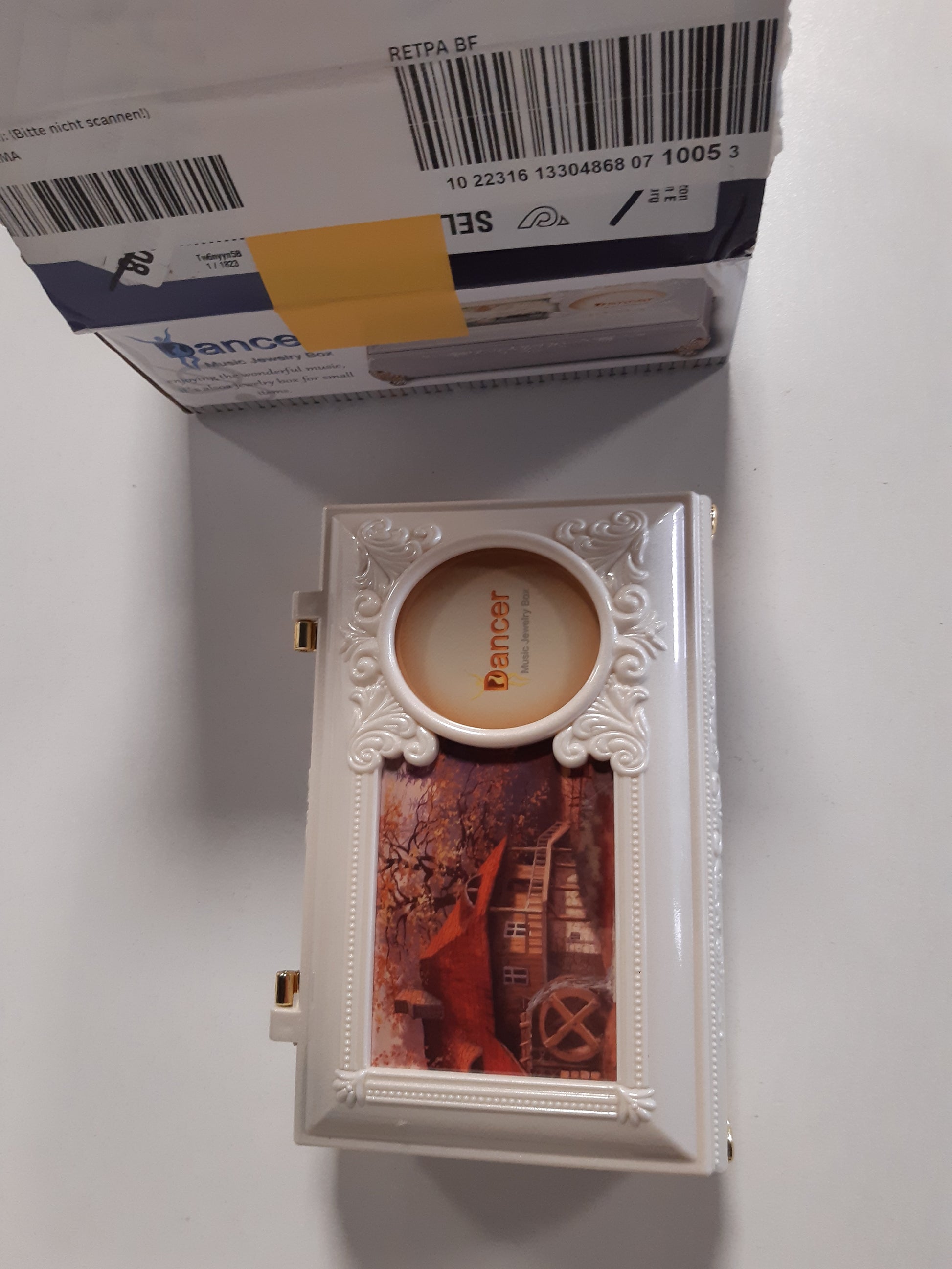 - Kuti muzikore e stilit vintazh, e dekoruar me balerinë dhe e zhvilluar me materiale të qëndrueshme plastike të bardhë perle.