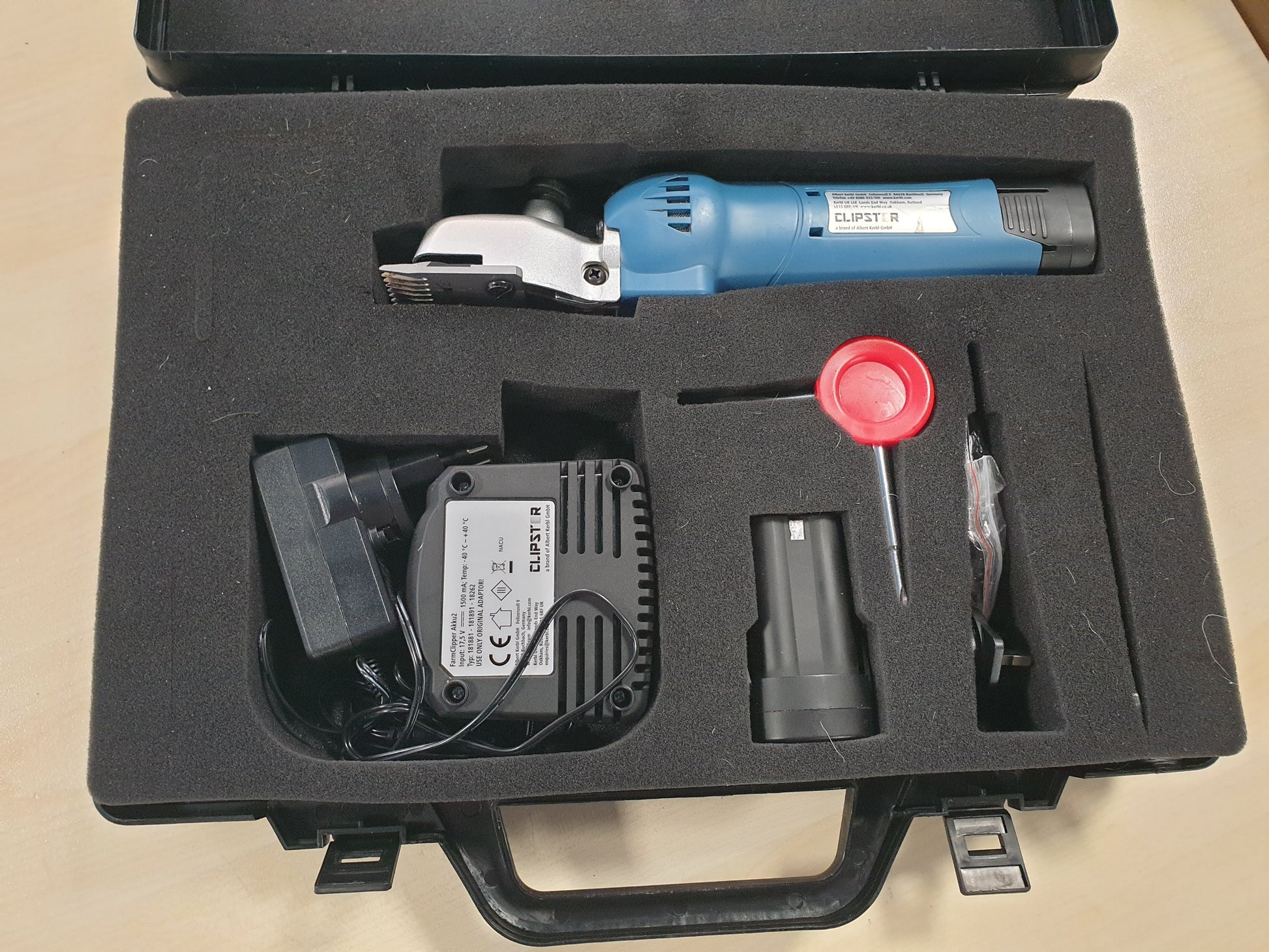 208018 - CLIPSTER FarmClipper Akku2, Makinë Prerëse pa Tel për Kafshë, me 2 Bateri, Blu, Madhësi 28.5 x 8 x 8cm, për Prerjen e Bagëtive, për Përdorim Veterinar, Jetëgjatësi Baterie 120 minuta