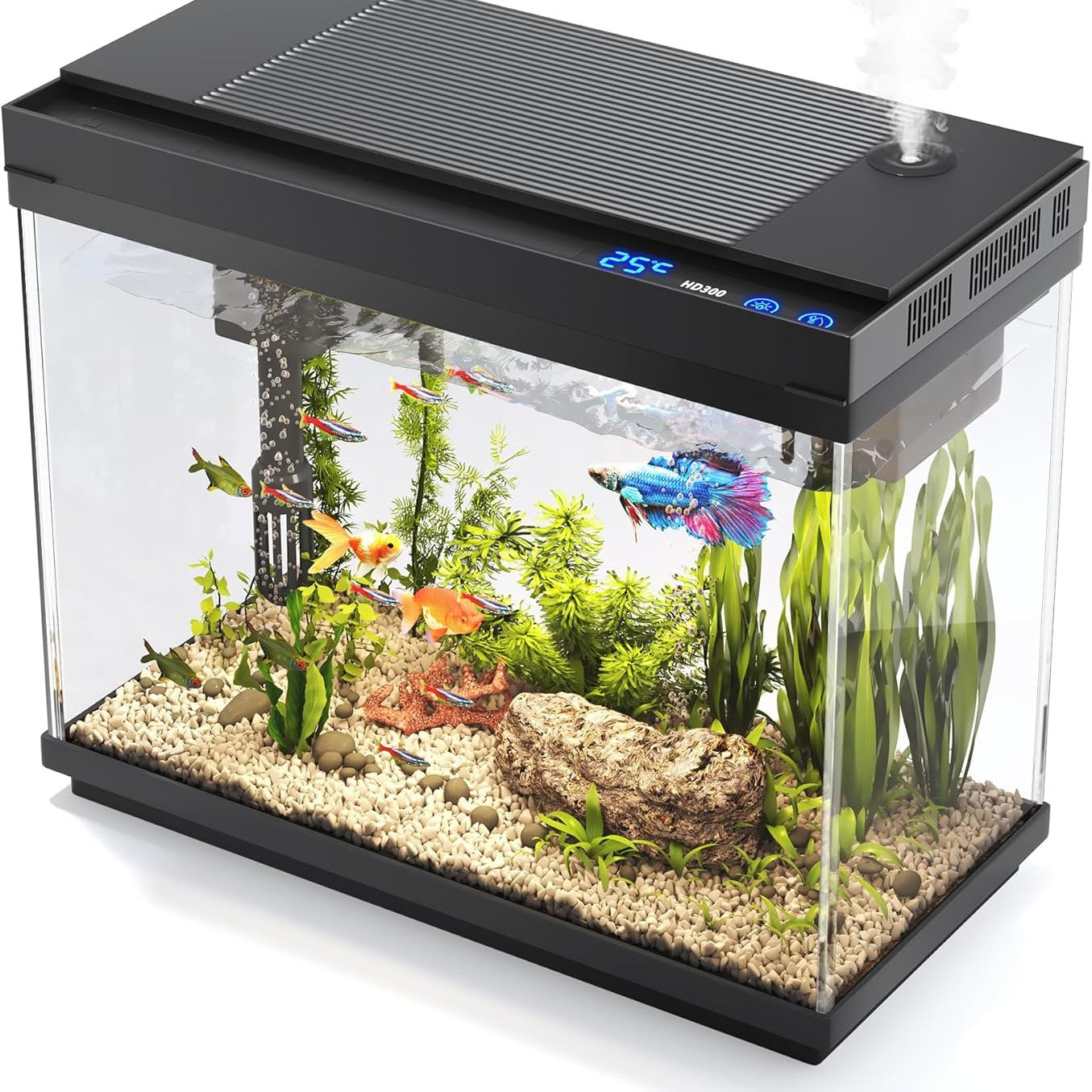 208173 - VEHIPA - Akuariume Qelqi 9L, me Lagështues Inteligjent, Tregues Temperature, Sistem Filtrimi i Heshtur 3-në-1, Ndriçim me 7 Ngjyra
