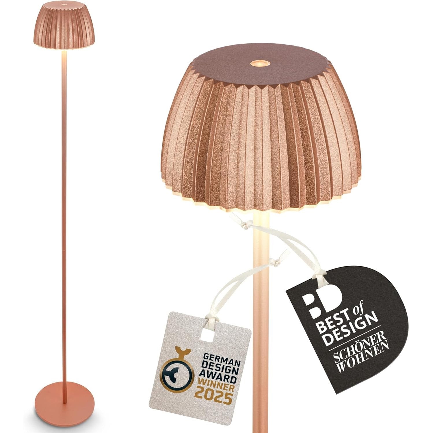 208245 - BRILONER - Llambë Dyshemeje pa Tel LED Riffle IP44 me Kontroll Prekje dhe Errësim, Funksion Memorje, 19x124 cm, Bateri Zëvendësueshme, Përdoret si Llambë Leximi ose Llambë Dhomë Ndenjjeje, Fituese e Çmimit Gjerman të Dizajnit, Ngjyrë Bakri