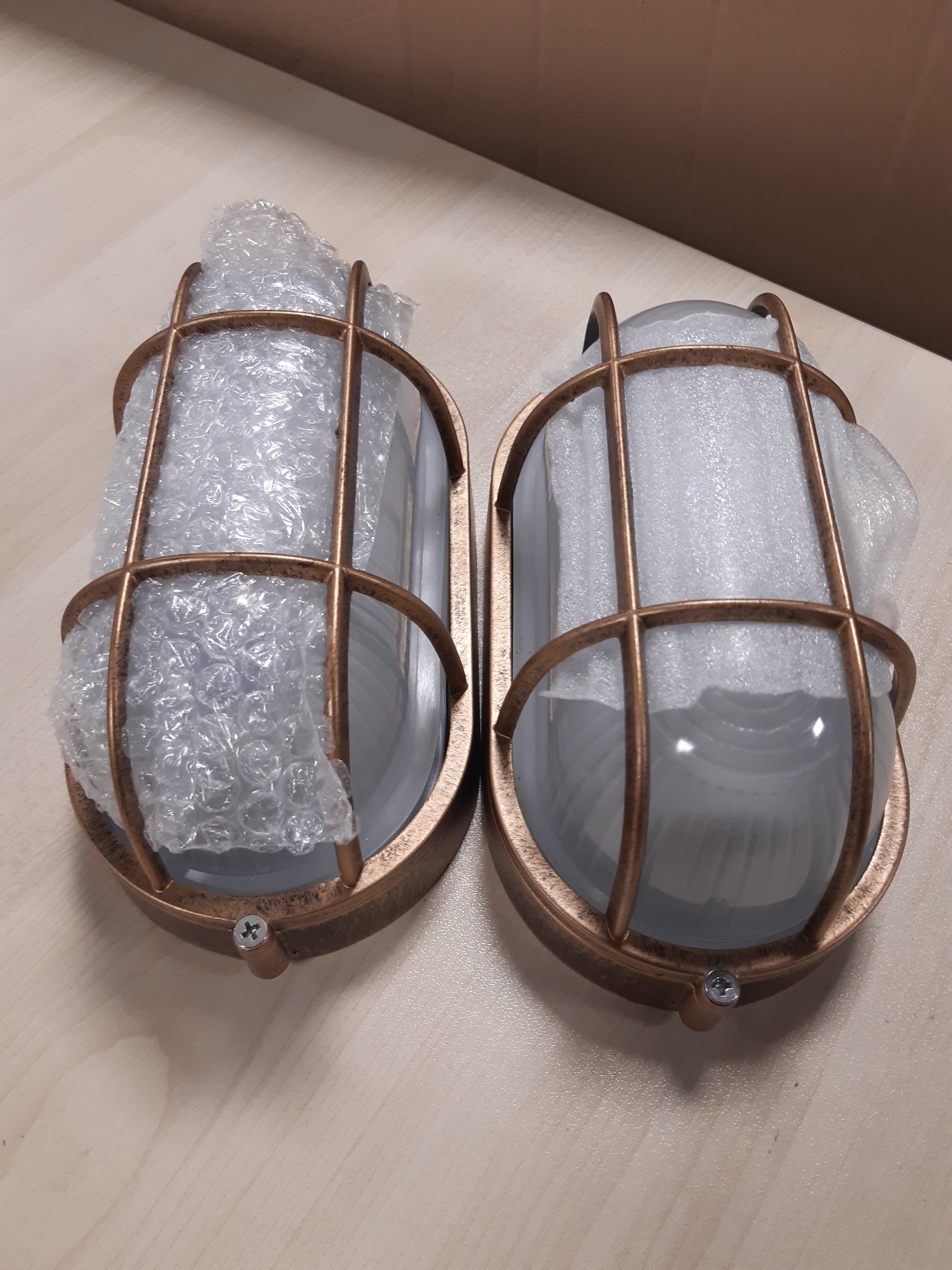 208384 - 2 COPË dríte ovale për tavani, të përshtatshme për ambiente të jashtme, me standardin IP44 për rezistencë ndaj ujit, ndërtuar me grilë alumini në ngjyrë bronzi antike dhe abazhur prej xhami, ideale për ballkon