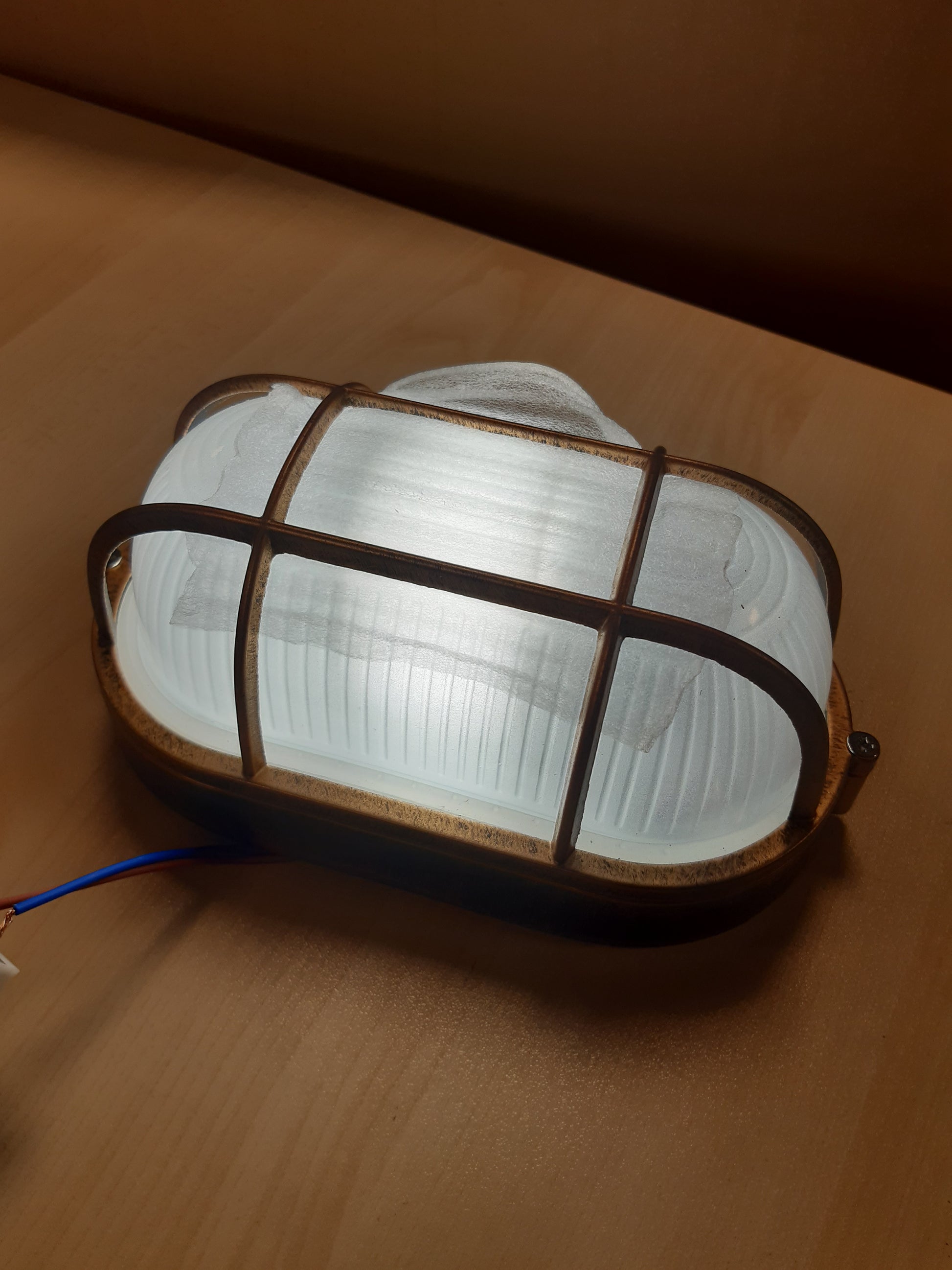 - Konstruktuara me alumini dhe qelq, kjo dritë muri/tavani ovale, me dizajnin e saj detar dhe ndarjen e saj ovale 21 x 11 x 9 cm, ofron një ndriçim retro modern për shtëpinë tuaj.