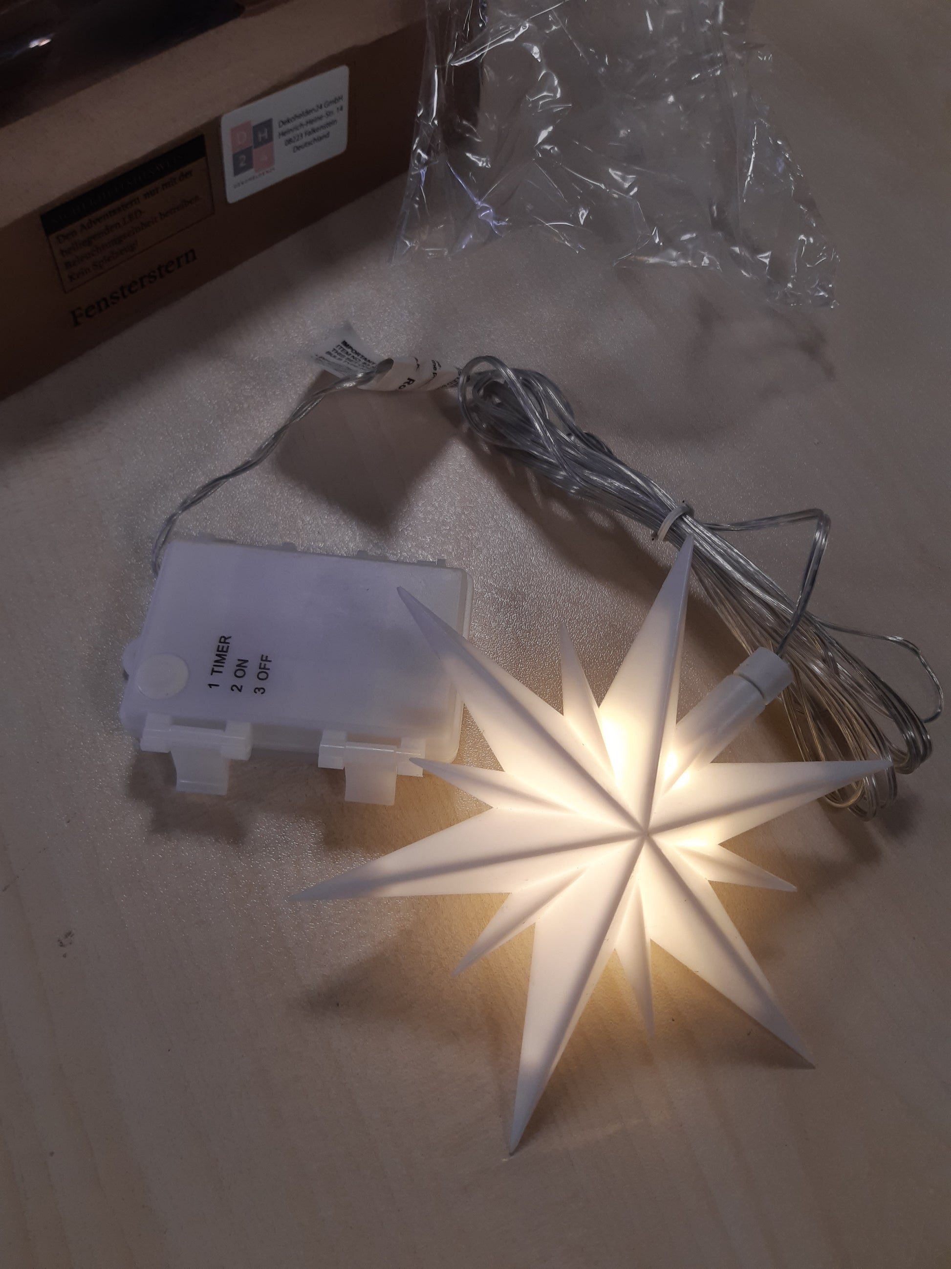 - Ylli i Krishtlindjeve është prej plastike të bardhë, me përmasat 13.5 x 5.5 x 12 cm.
