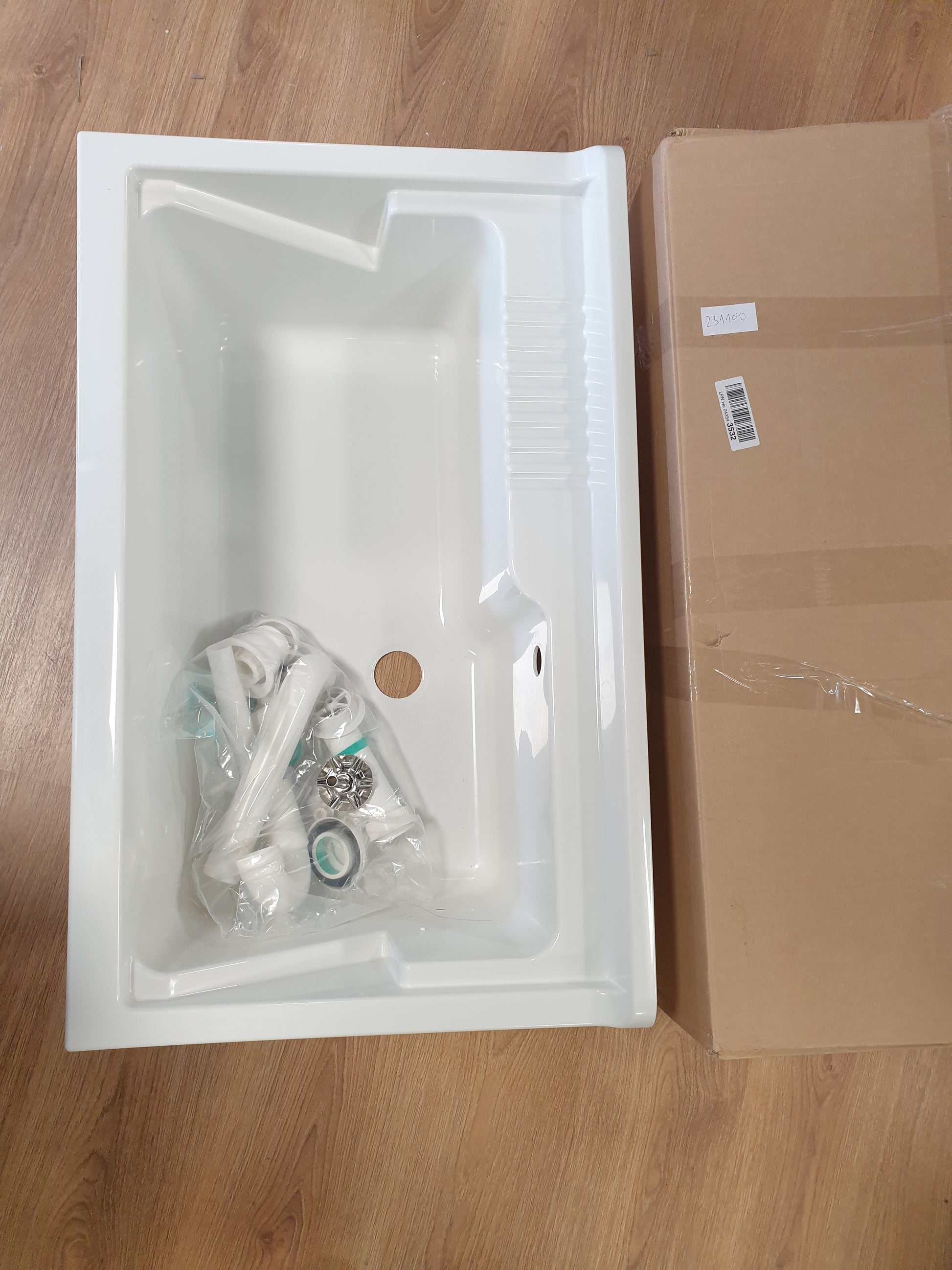 231100 - NEGRARI Vaskë rrëshire PP për lavaman, Gjatësia 80 x Gjerësia 50 x Lartësia 30 cm, e bardhë, rezistente ndaj lagështirës dhe acideve, komplet kullimi i përfshirë, për përdorim të brendshëm dhe të jashtëm