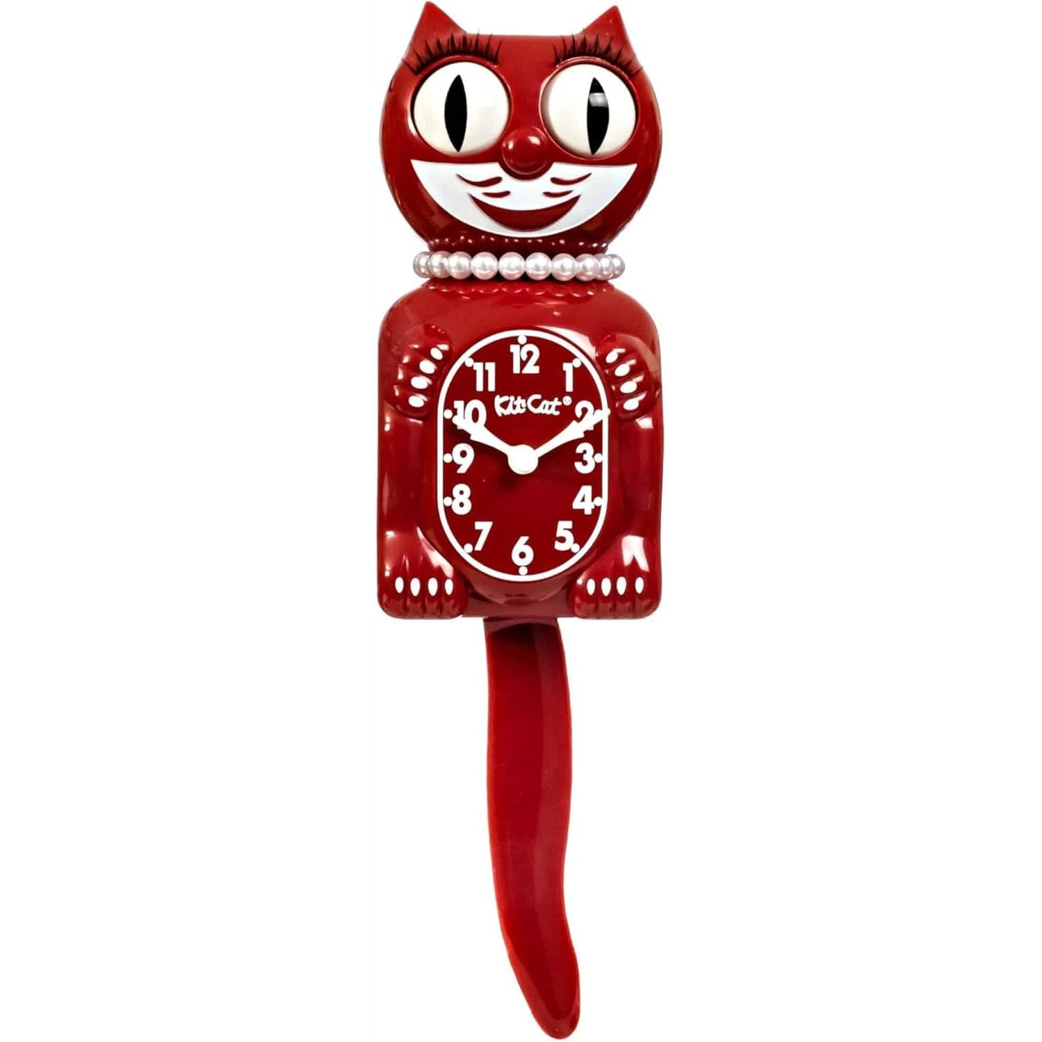 - Kit Cat Klock® është një orë mure me dizajn unik që përfshin perla dhe ngjyrë hapësinore me ngjyrë qershie të kuqe.