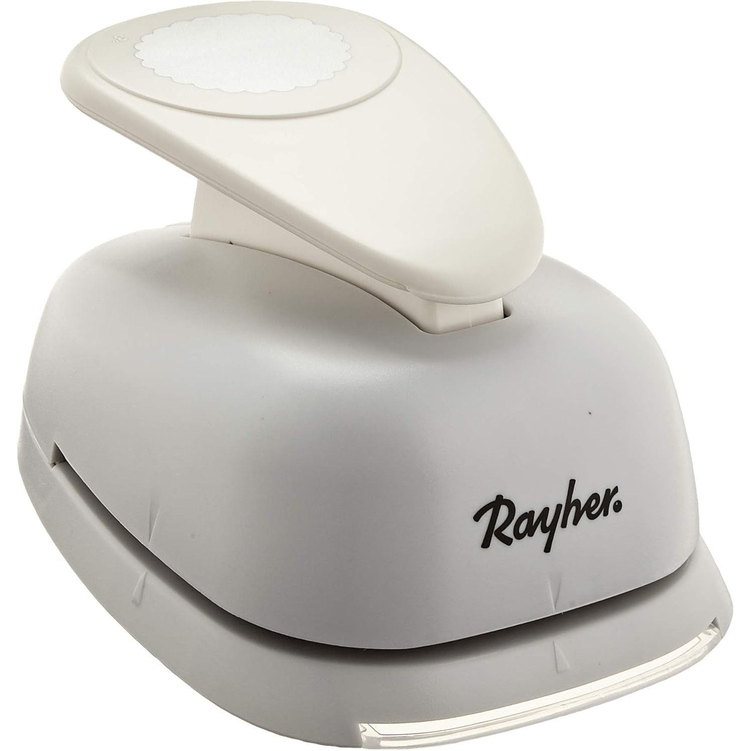 136614 - RAYHER Shpues i rrumbullakët prej Plastike 69085000, Shpues për Letër me Diametër 7.6cm dhe Përmasa 2.3x1.4x0.9cm, i Bardhë - E përdorur, nuk shpon sa duhet mirë.