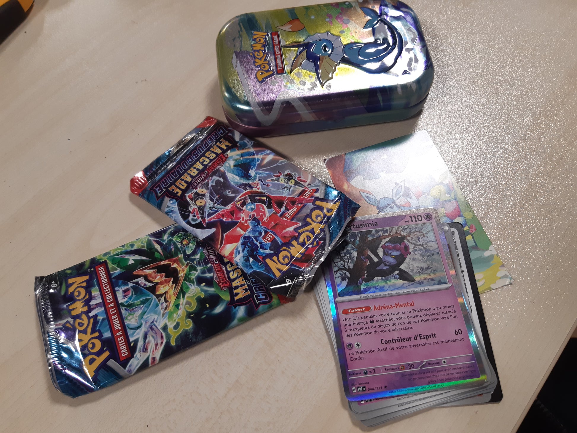 - Mini-kutia paraqet një ilustrim të Aquali-t dhe përfshin 2 pako përforcuese: Skarlat dhe Vjollcë nga Pokémon TCG.