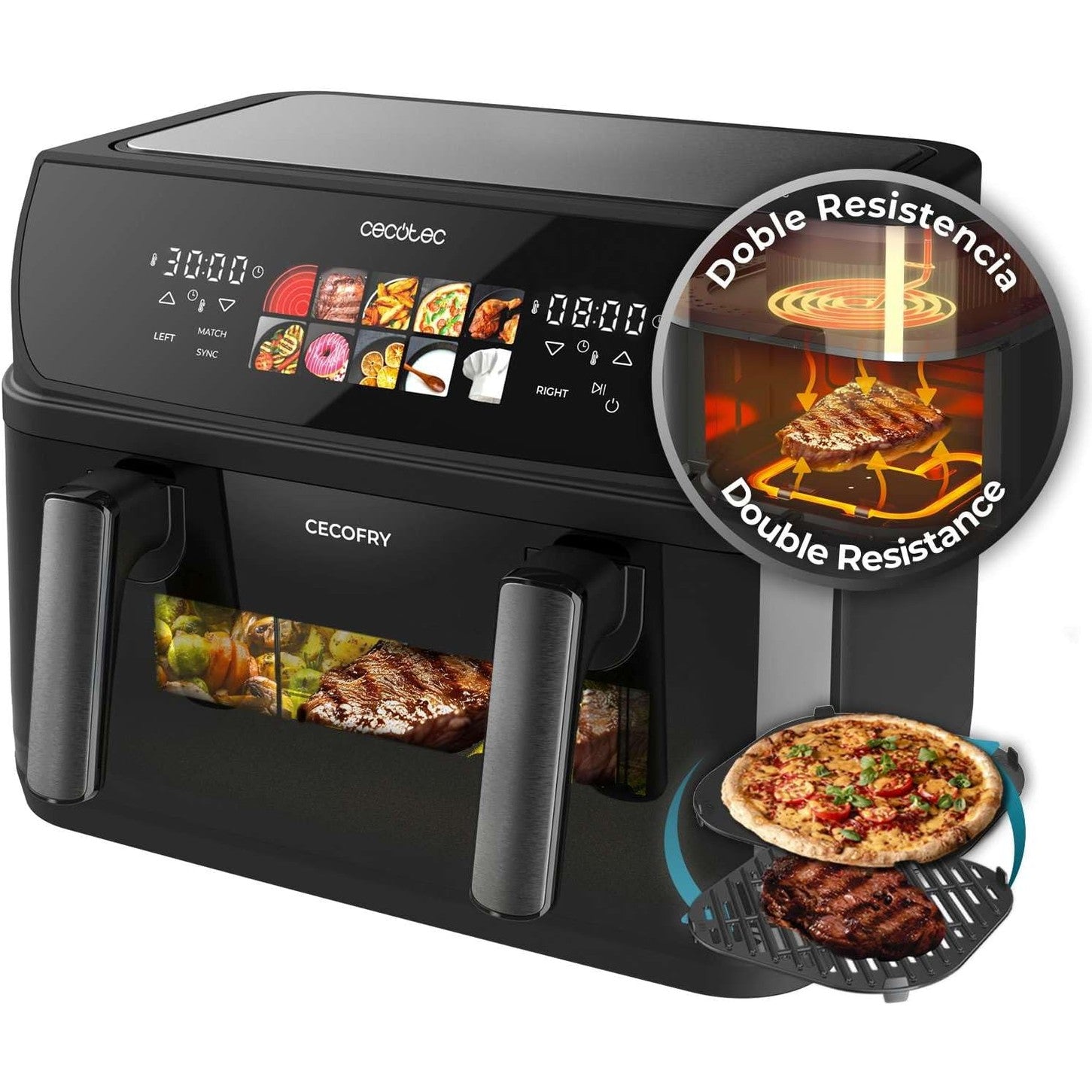 83217 - CECOTEC Fritezë me Ajër pa Vaj 'CecoFry&Grill DuoHeat 10000', Kapaciteti 10L, Skarë dhe Pllakë Gatimi, Element Ngrohjeje i Dyfishtë 2800W, Gatim i Shpejtë, Rezultate të Qëndrueshme