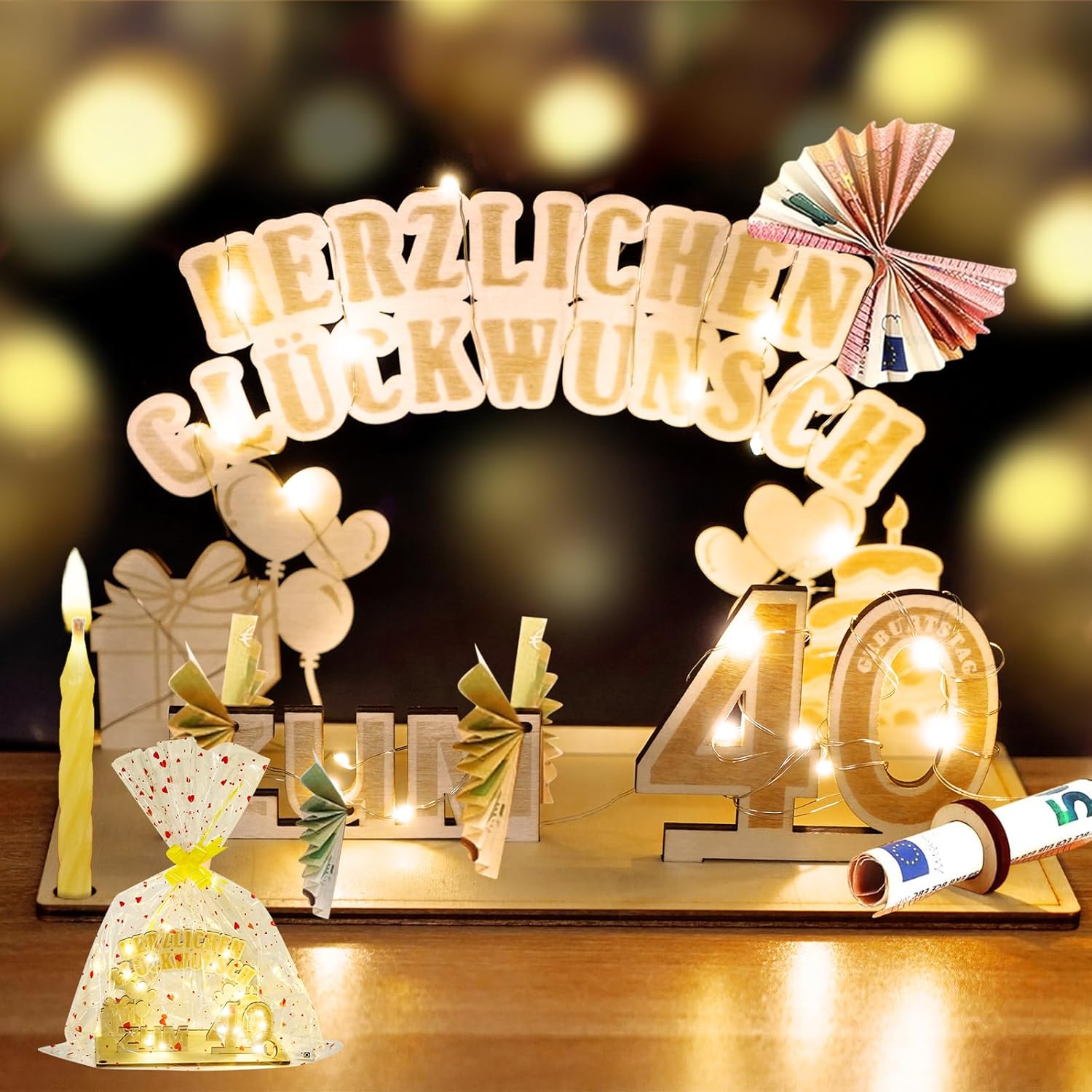116063 - YSWOVUO Shënim për ditëlindjen e 40-të për burra dhe gra, prej druri, me drita LED dhe tela, në ngjyrë argjendi - E re.